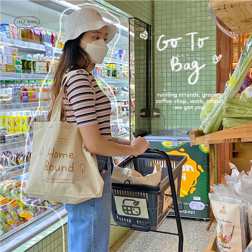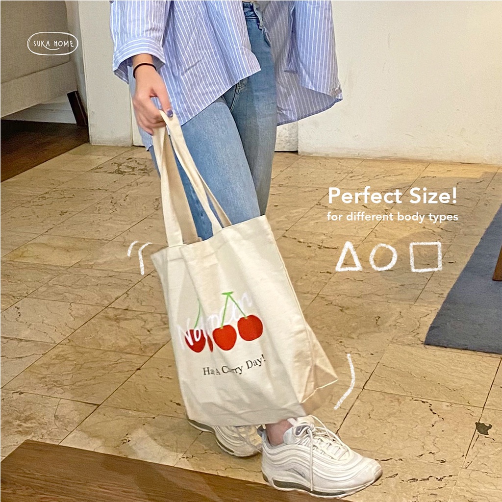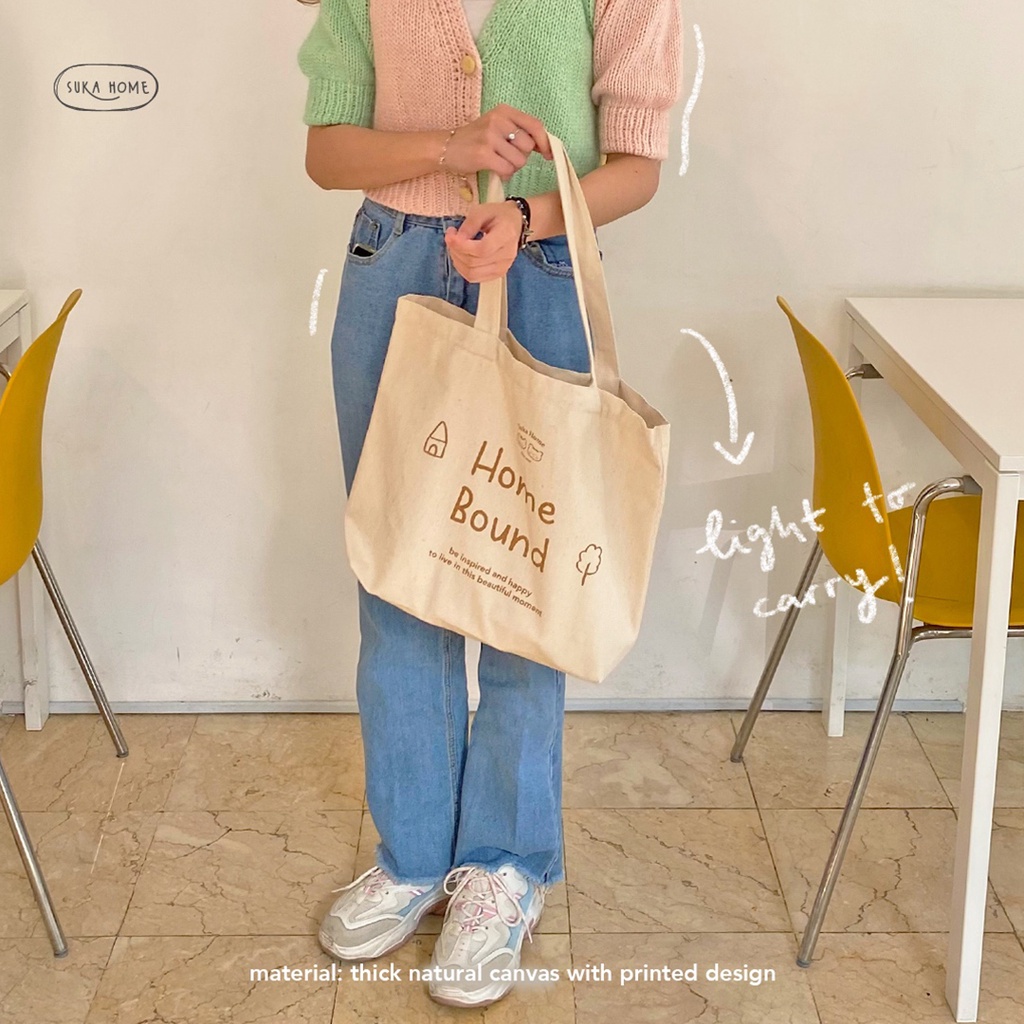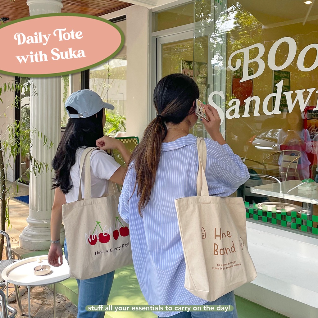 Tas Kerja Kuliah Totebag Kanvas Wanita | Korean Vintage Daily Bag | Tas Fashion Wanita | Tas Kanvas Tebal Premium | Daily Tote Bag by Suka Home [Limited Edition]
