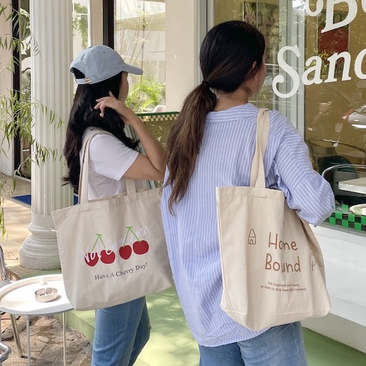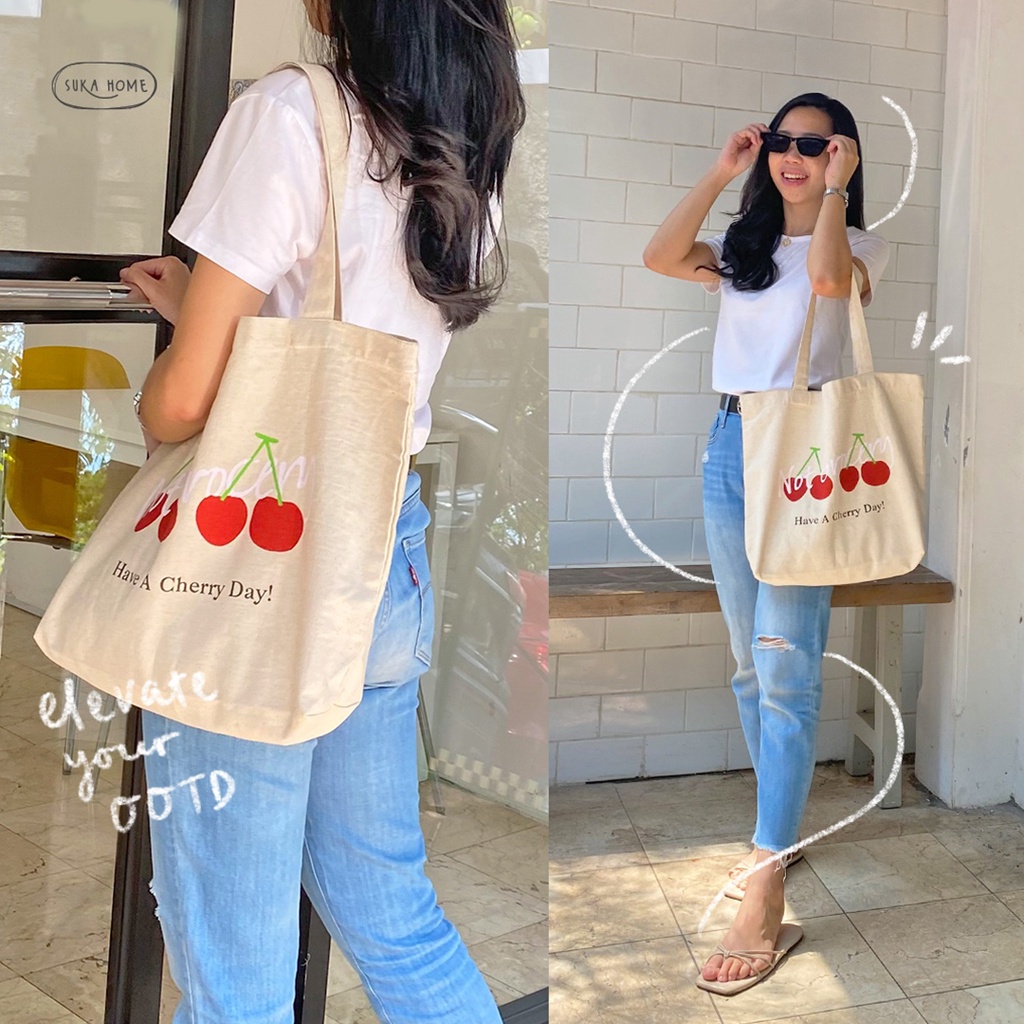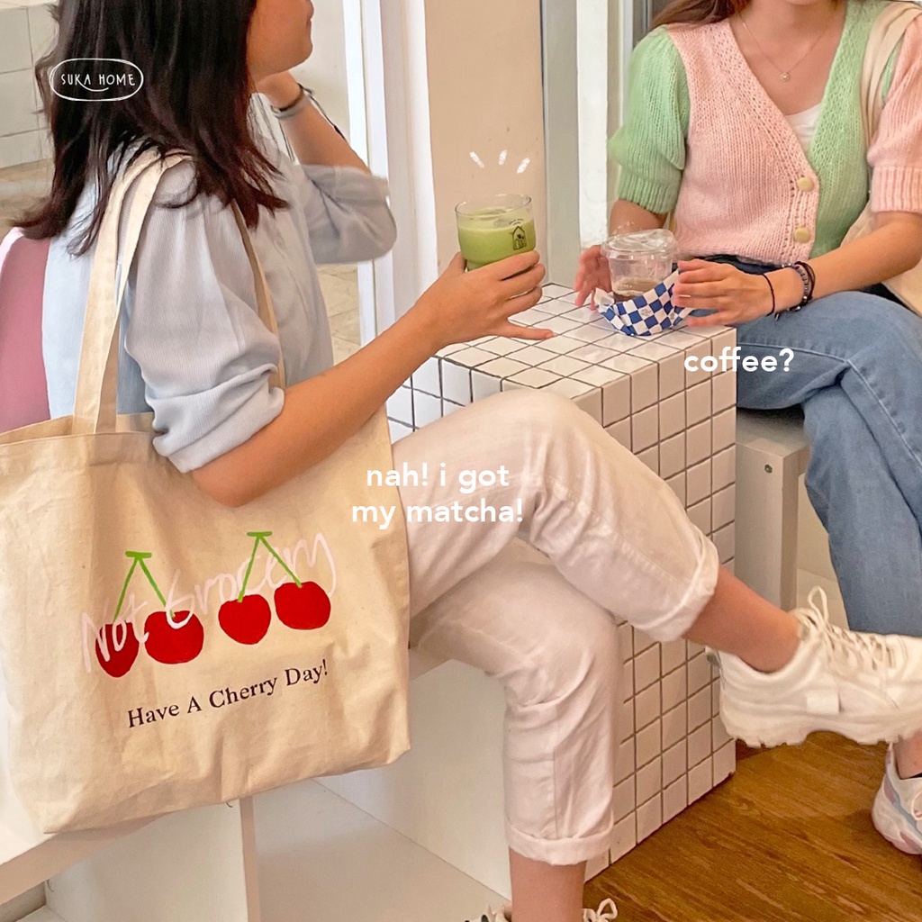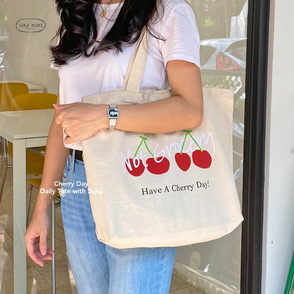 Tas Kerja Kuliah Totebag Kanvas Wanita | Korean Vintage Daily Bag | Tas Fashion Wanita | Tas Kanvas Tebal Premium | Daily Tote Bag by Suka Home [Limited Edition]