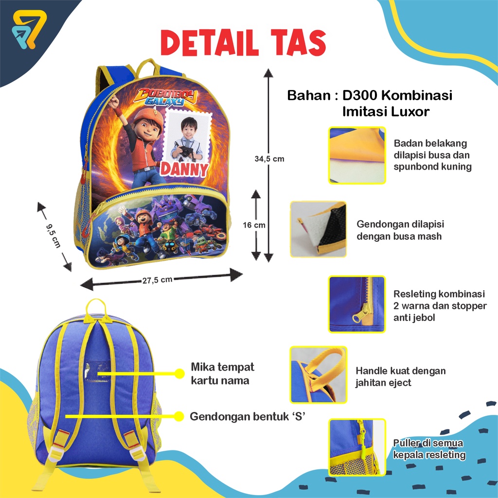 Tas Anak Custom BOBOIBOY Foto + Nama Tas Anak TK PAUD [Dexter] taspromosi2p