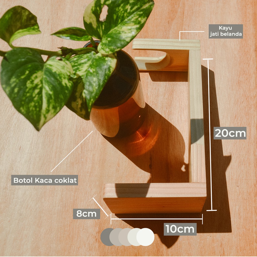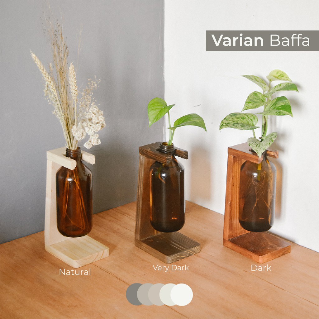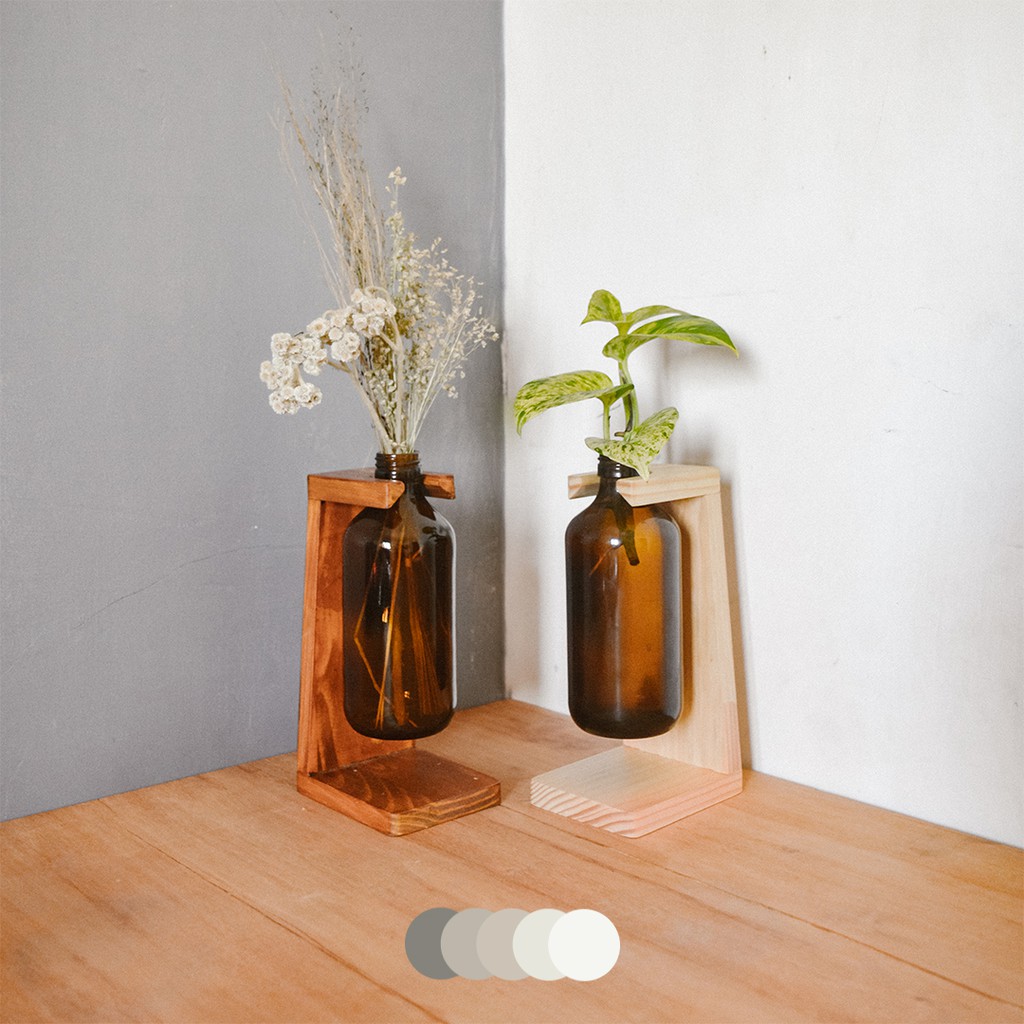 Vas botol propagation + Kayu / dengan penyangga kayu jati belanda untuk hiasan meja, bunga kering, tanaman air.