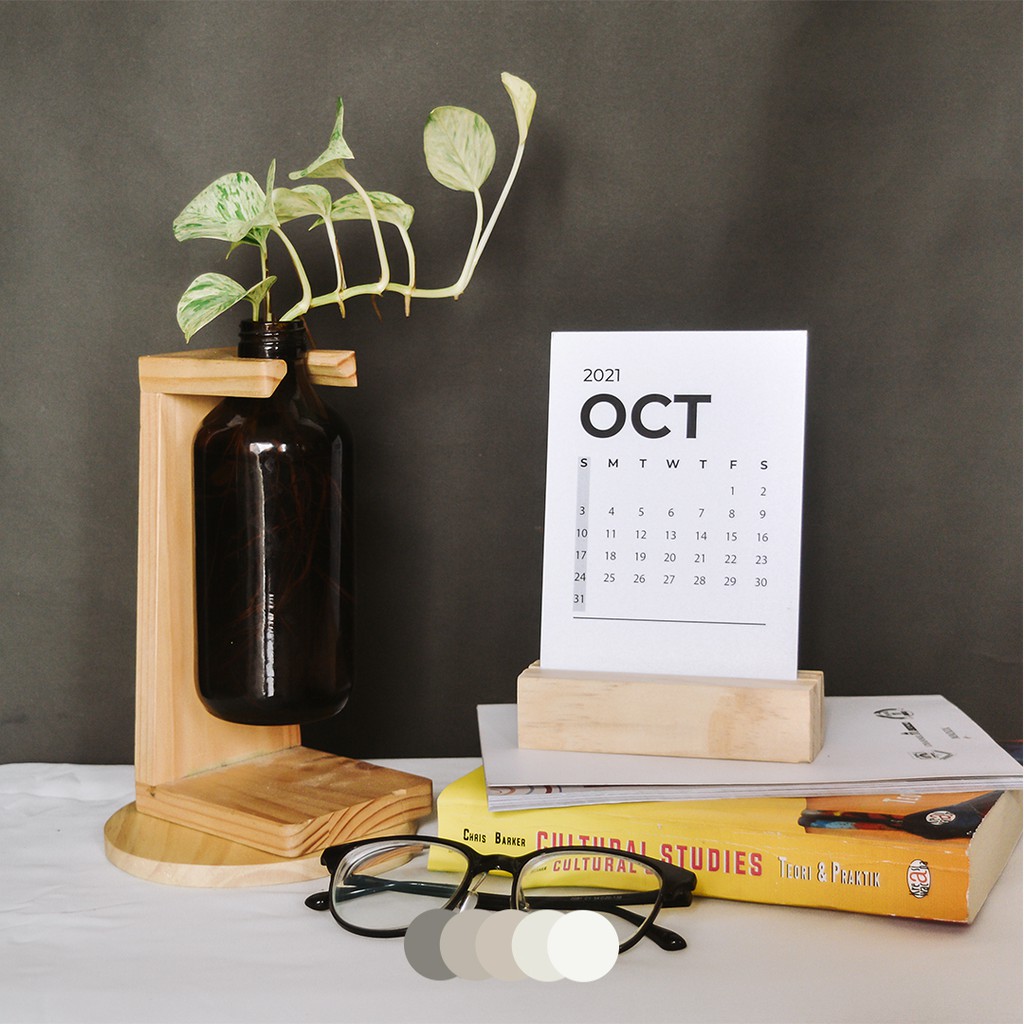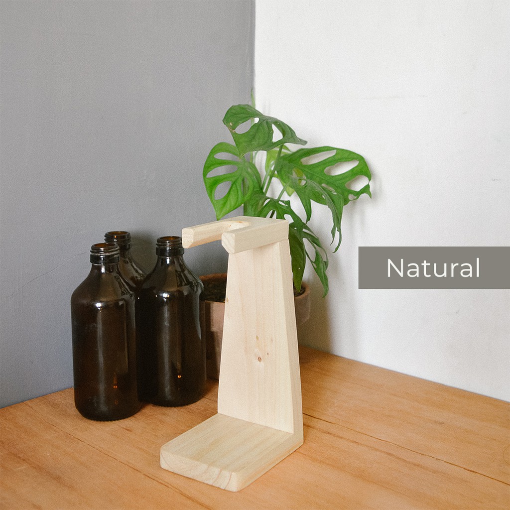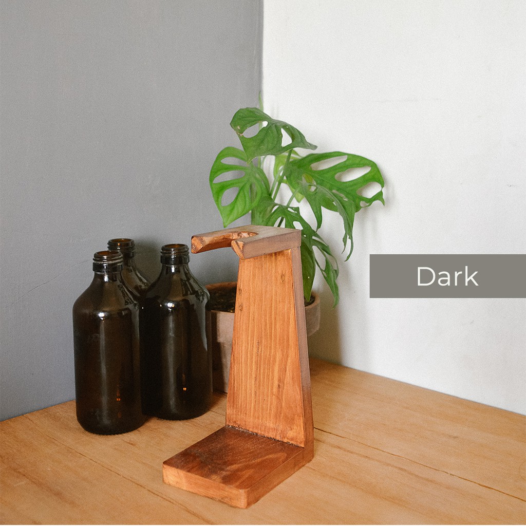 Vas botol propagation + Kayu / dengan penyangga kayu jati belanda untuk hiasan meja, bunga kering, tanaman air.