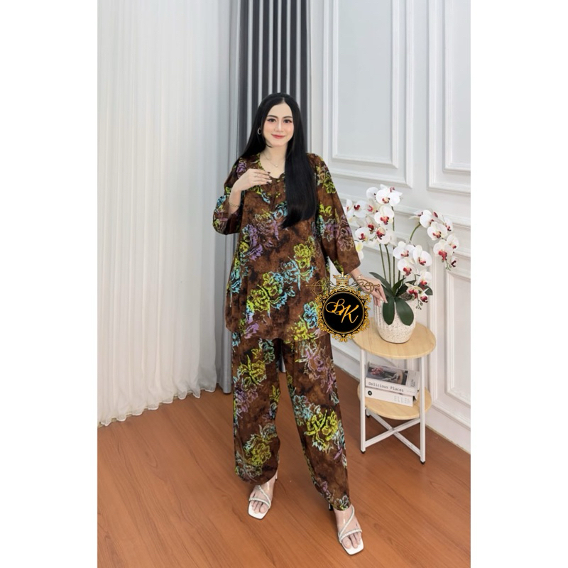 Setelan Celana Panjang Jumbo Ld 130 | Setelan Cap Jumbo Ld 130 | Setelan Jumbo Lengan 7/8| One Set Arabian |Setcel Arabian