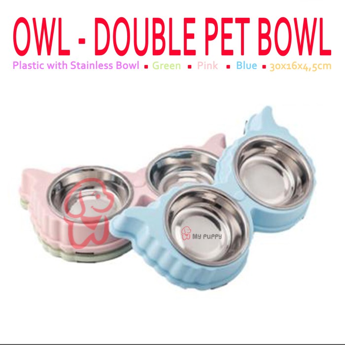 OWL DOUBLE PET BOWL - PLASTIC WITH STAINLESS - TEMPAT MAKAN MINUM