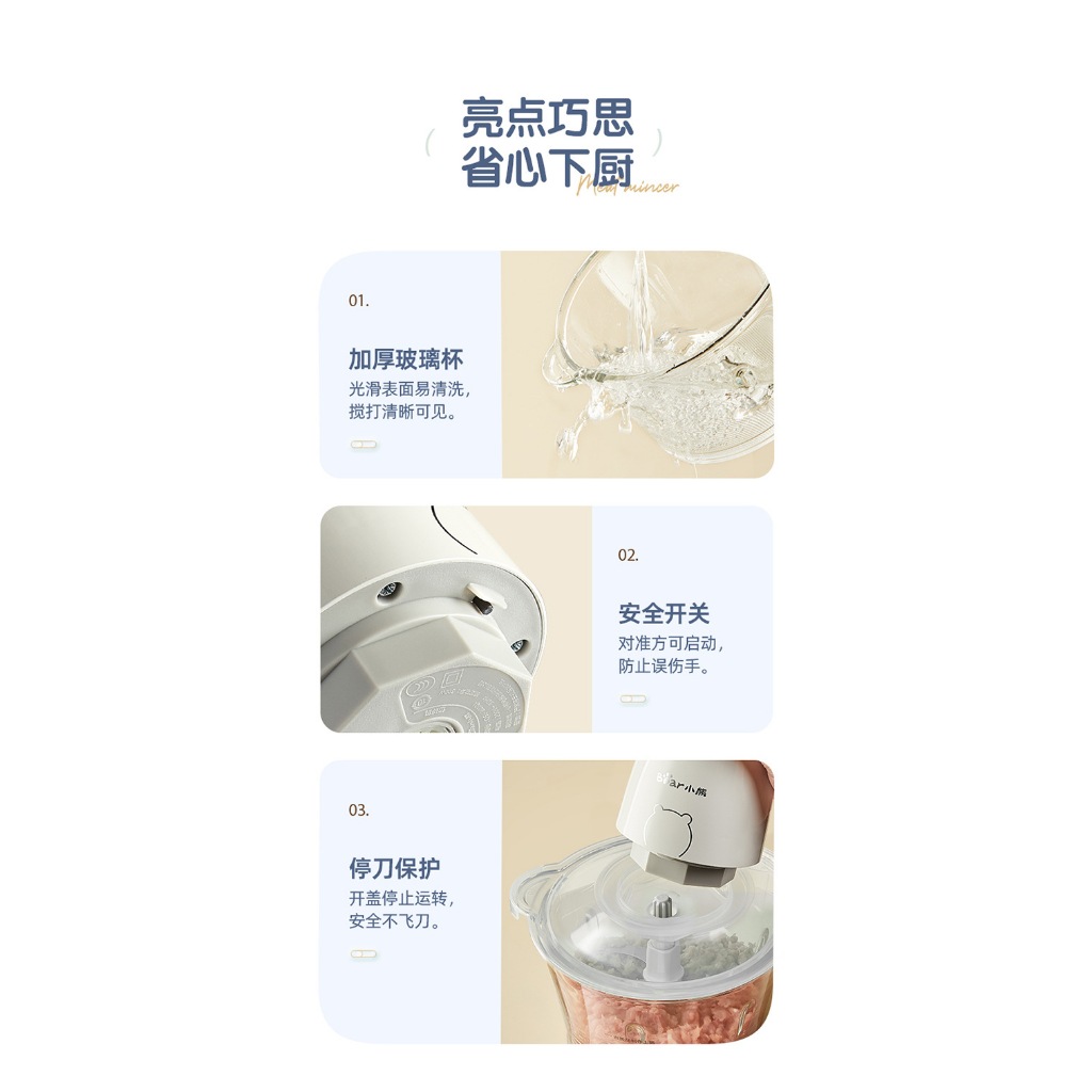 Bear Electric Chopper / Meat Grinder / Penggiling Daging / Giling Bumbu Dapur Otomatis