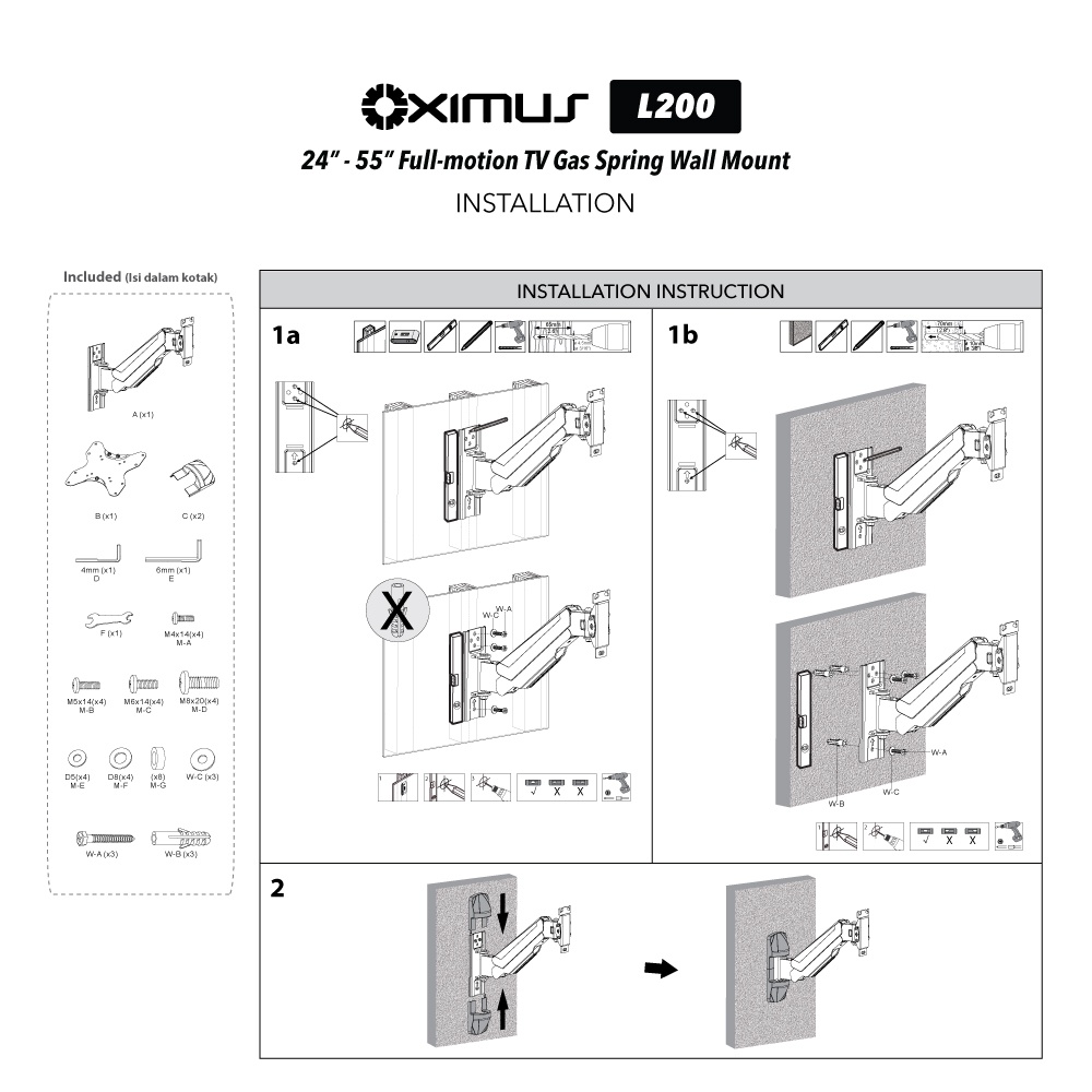 Bracket TV Wall Gas Spring Naik Turun Swivel 24" - 55" OXIMUS L200