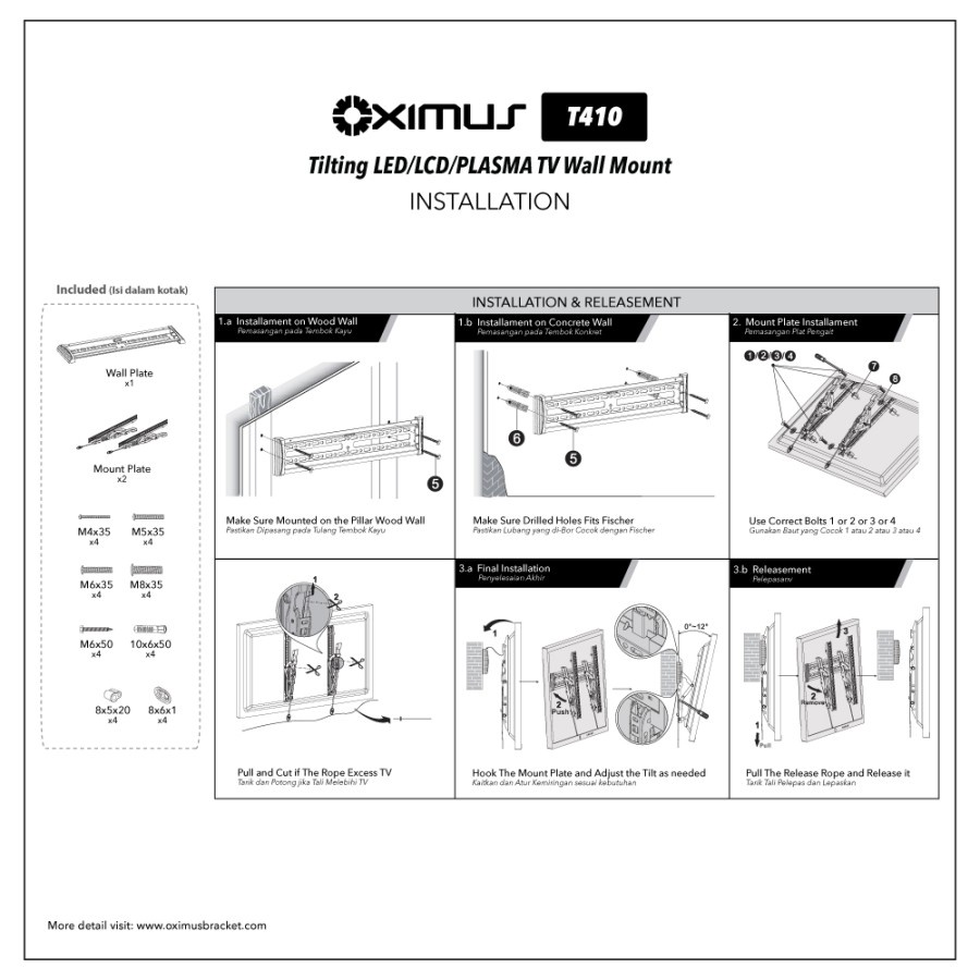 BRACKET TV LED LCD MONITOR 32"-55" OXIMUS T410 WALL MOUNT TILT