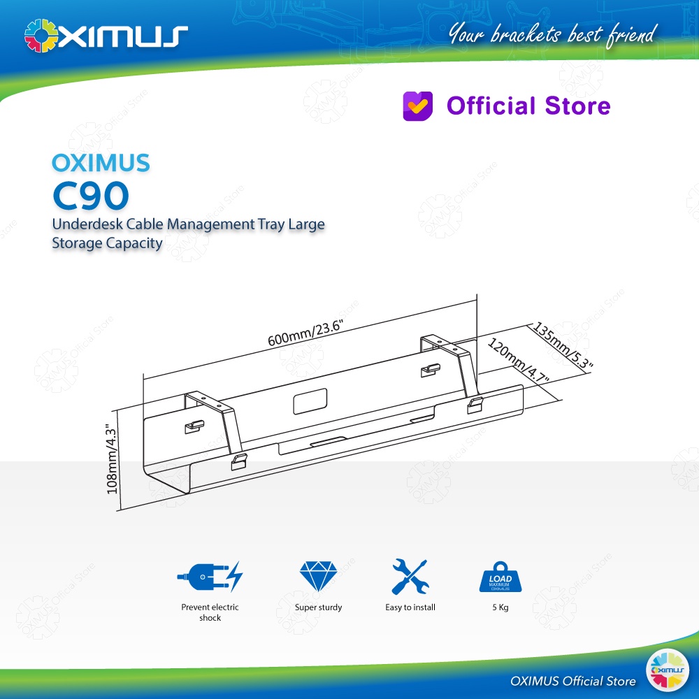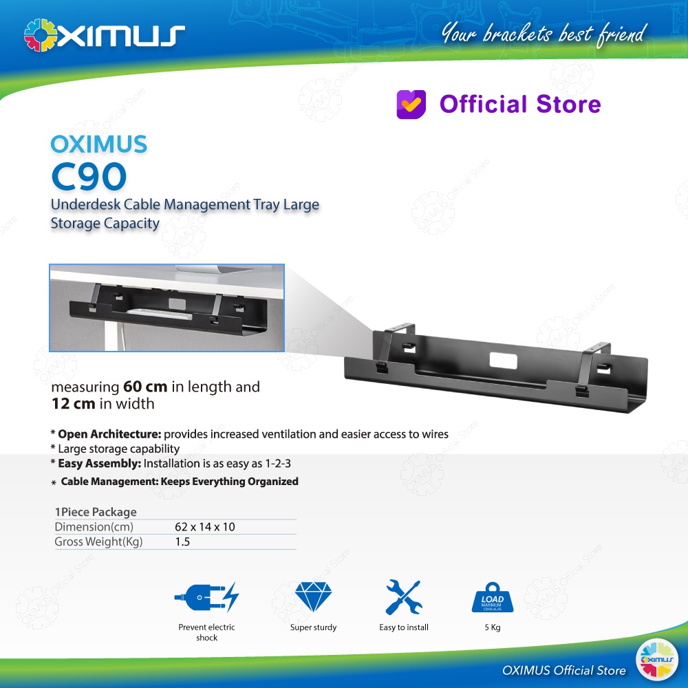 Underdesk Cable Management Tray Large Storage Capacity Oximus C90