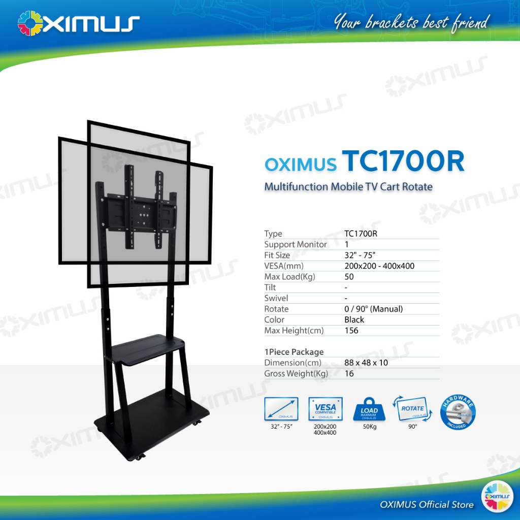 Bracket TV Standing Roda Kuat Rotasi 32 - 60 Inch OXIMUS TC1700R Rotate