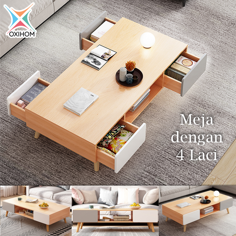 Oxihom Meja Tamu Laci Meja Kopi Meja Ruang Tamu Meja Lesehan Kayu Besi