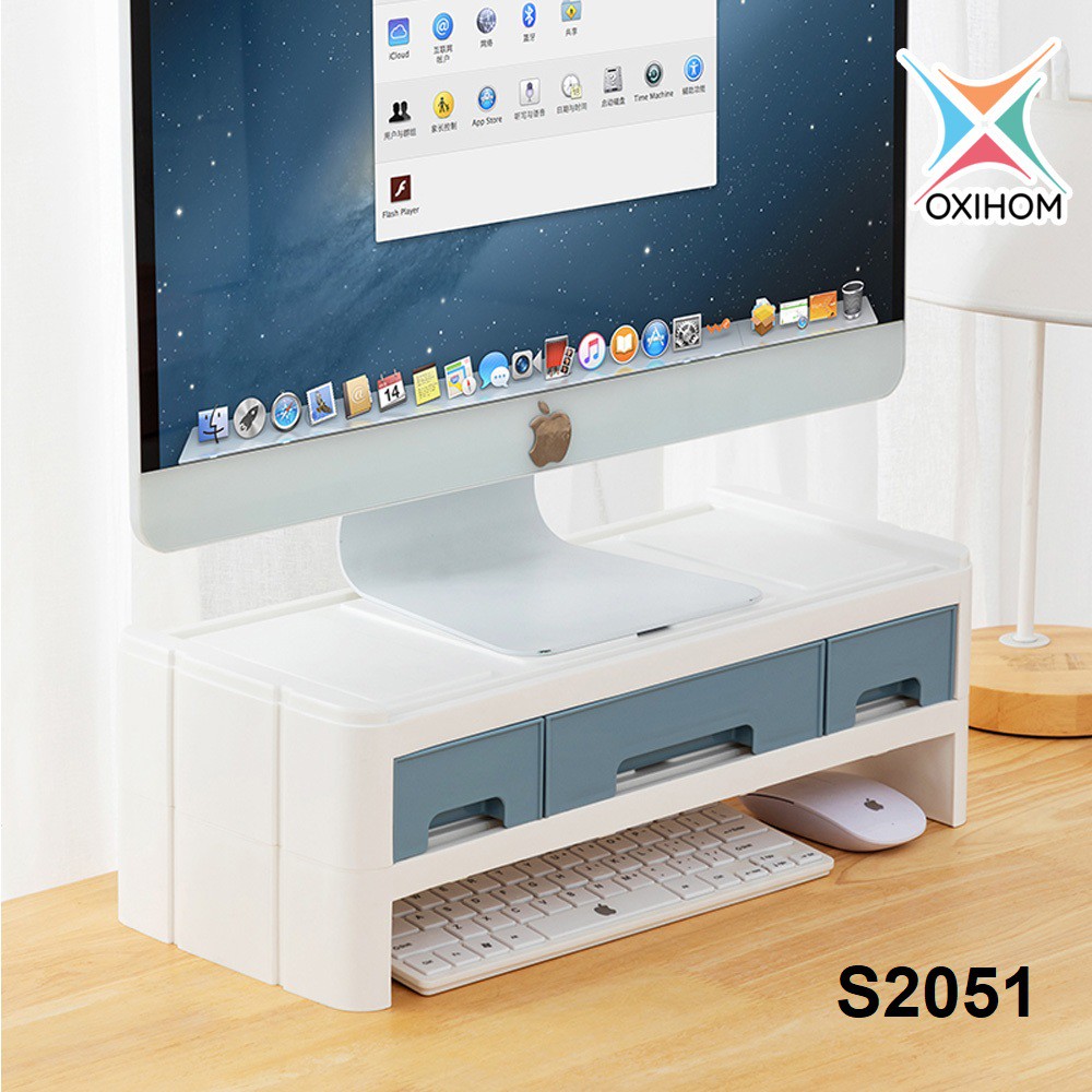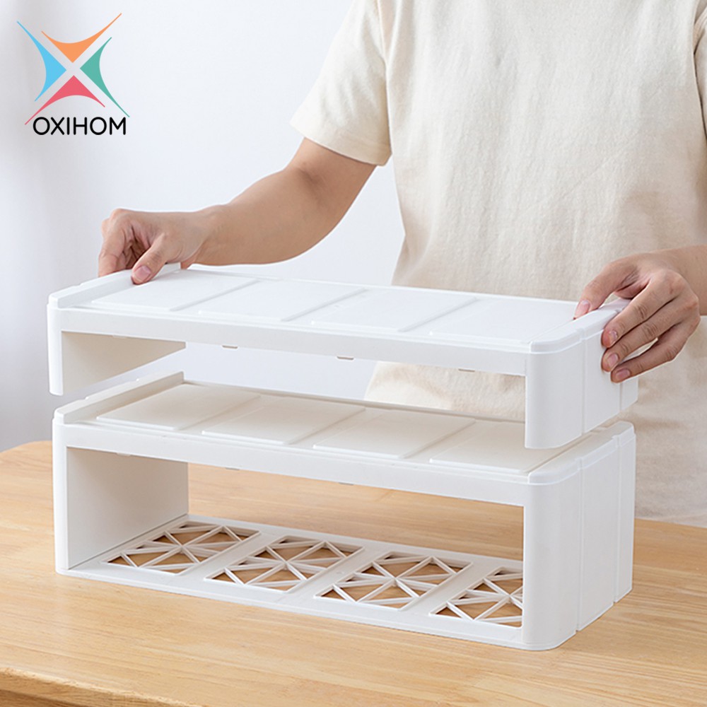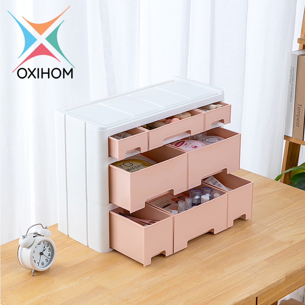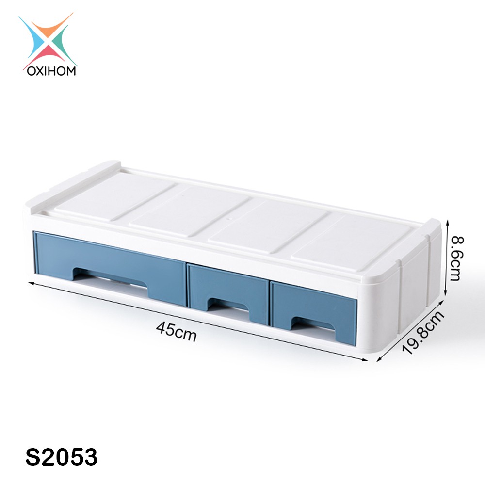 Oxihom Laci Plastik Susun Tempat Kotak Penyimpanan Meja Stand Monitor Drawer Storage Stackable Desktop Organizer