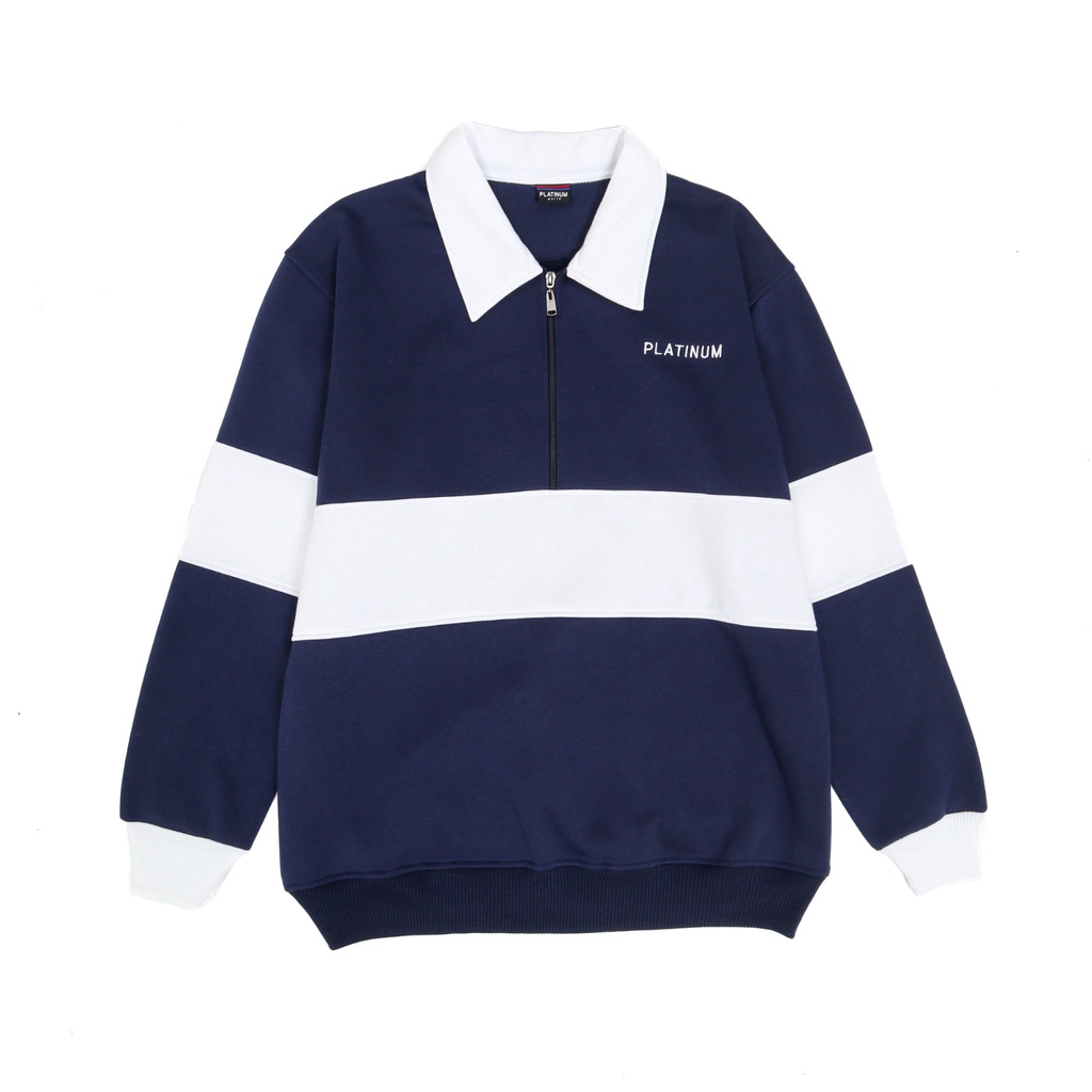 PLATINUM WORLD Sweatshirt Crewneck HALF ZIPP Rugby Kombinasi Pria - Wanita V7