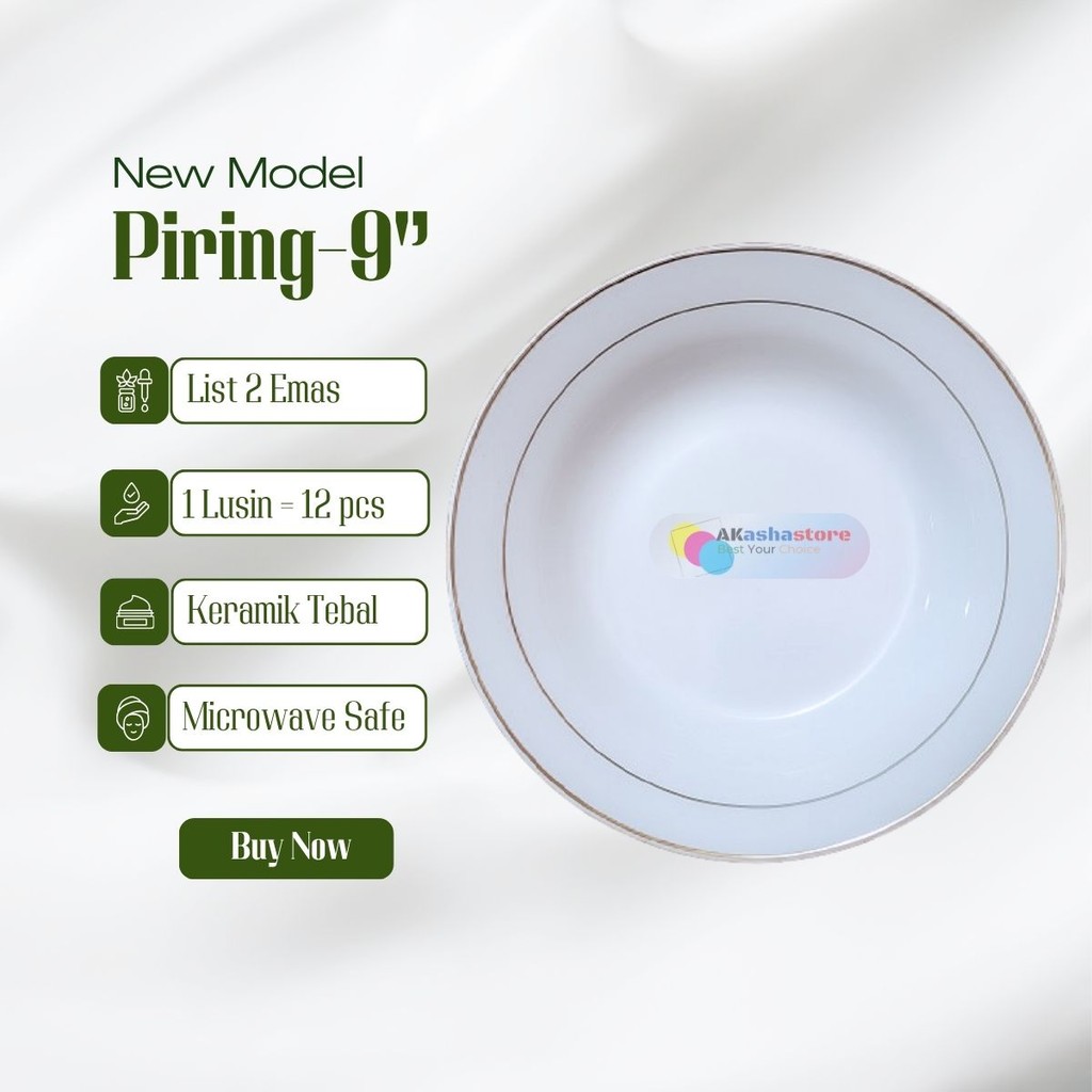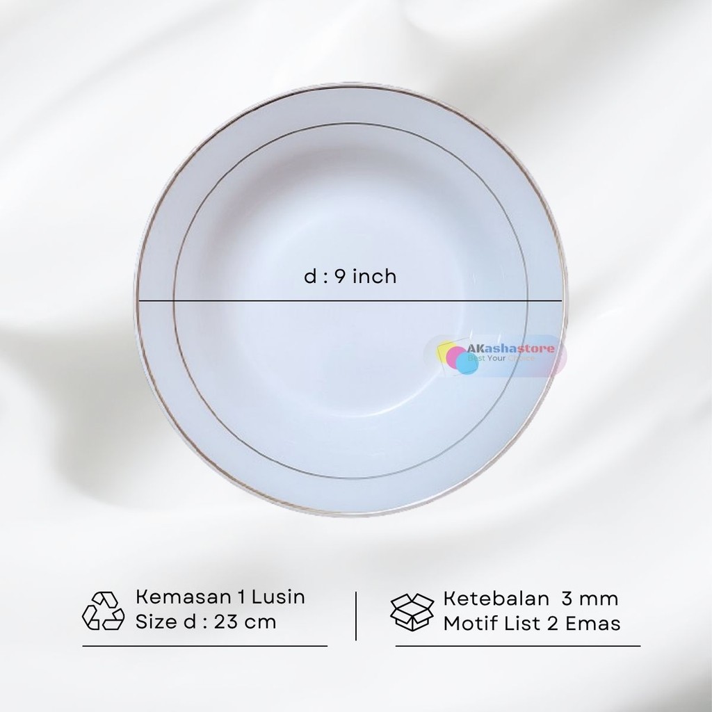 Piring Makan Keramik Lusinan 12 pcs Ukuran 9 Inch Motif List 2 Emas Mewah