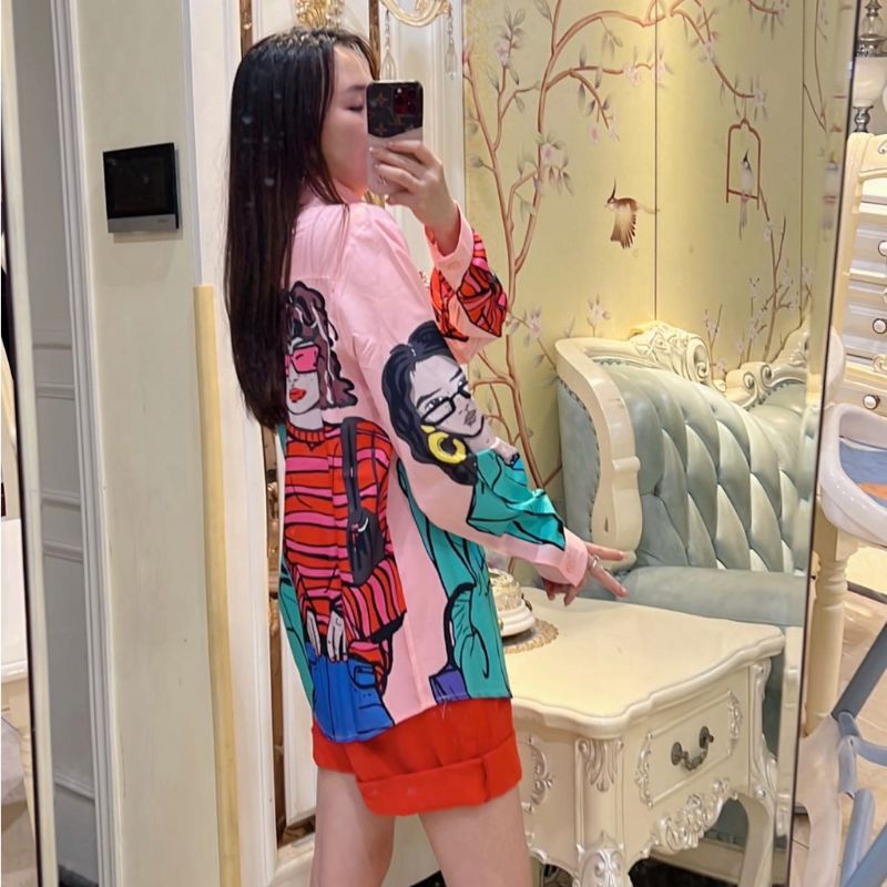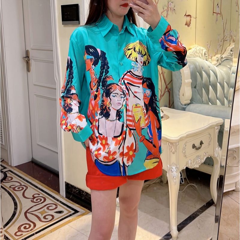 5613 Baju Blus blouse kemeja autfit lengan panjang kerah kancing motif gambar orang lucu unik adem simpel gaul anakmuda abege Korean style import terlaris terlaku realpic Kostum autfit outfit baju blus blouse blose kemeja lengan panjang motif gambar real