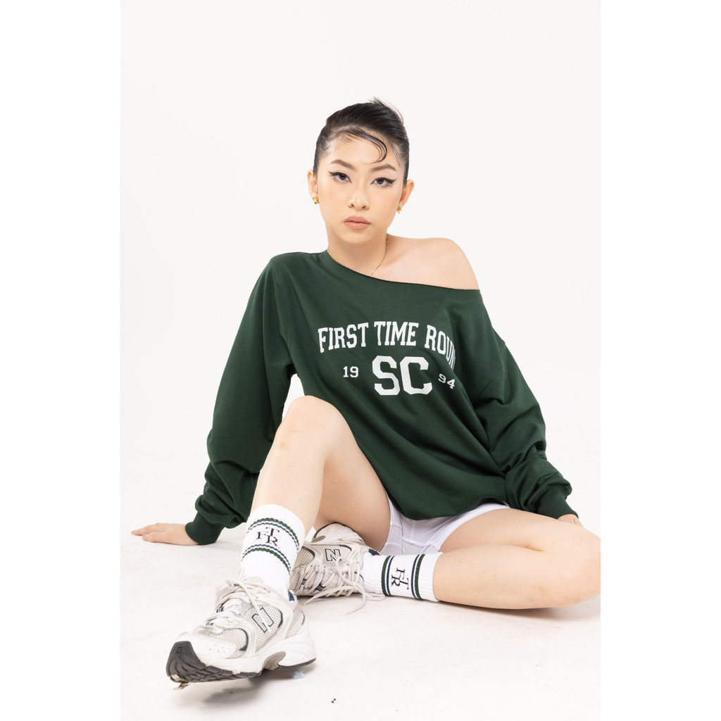 First Time Round - Off Shoulder Sweater - Charcoal/Forest Green/Oxford/White/Grey