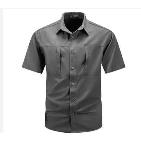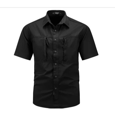 Kemeja M-TAC Lengan Pendek Kemeja Saku Zipper Kemeja Lapangan Navy