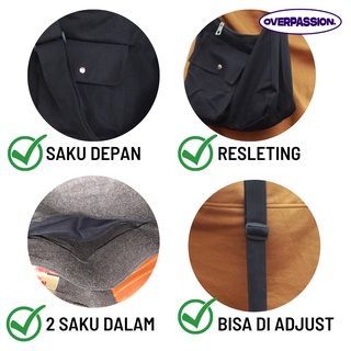 Tas Selempang Kanvas Ukuran (33 cm x 25 cm x 10 cm) KANVAS PREMIUM ,Kantong Depan Resleting ,Sling Bag Pria Dan Wanita Murah Tote bag - OVERPASSION
