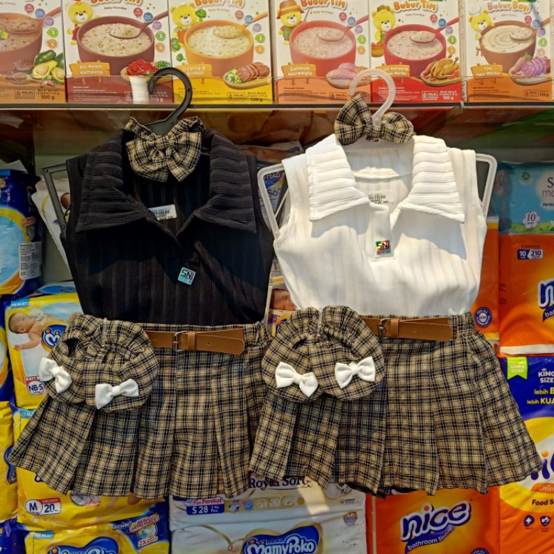 Fashion Banu Lebaran Stelan Rok Anak Lengan Kutung Free Bando Sepatu