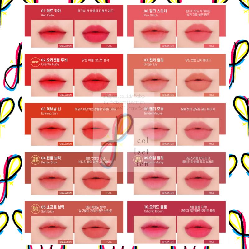 WAKEMAKE Water Blurring Fixing Tint 3.8g (18 Colors Shades Watery Velvet Lip Tint)