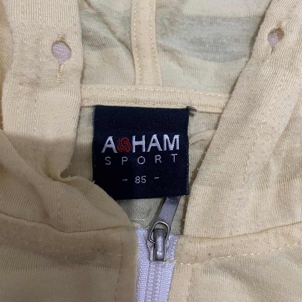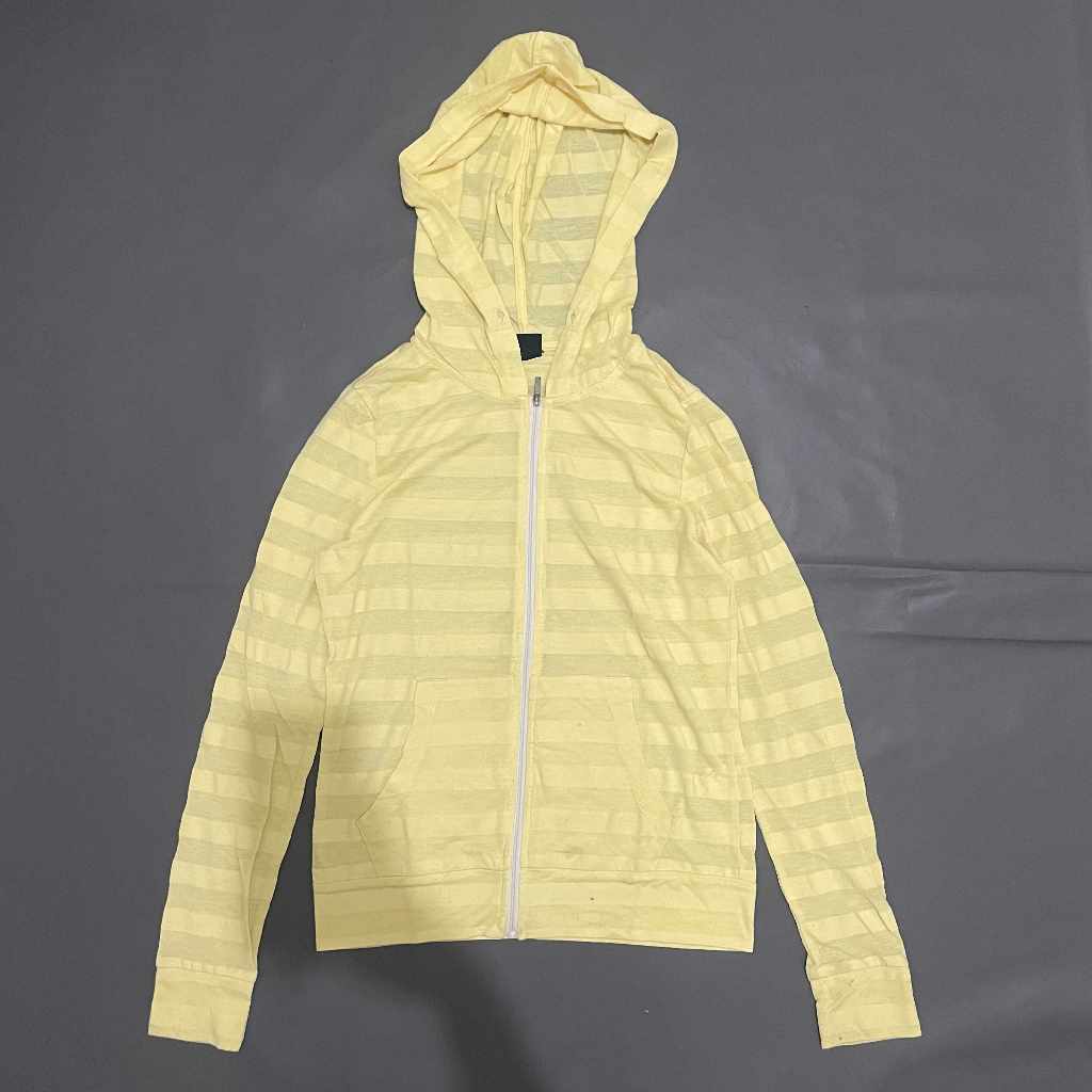 DEWASA A098 (ASHAM SPORT ORI, PRELOVED) Baju Jaket Cardigan Luaran Outer Atasan Top Hoodie Kupluk Tangan Panjang Stretch Resleting Depan Adem Garis Samar Kuning Dewasa Perempuan Cewek