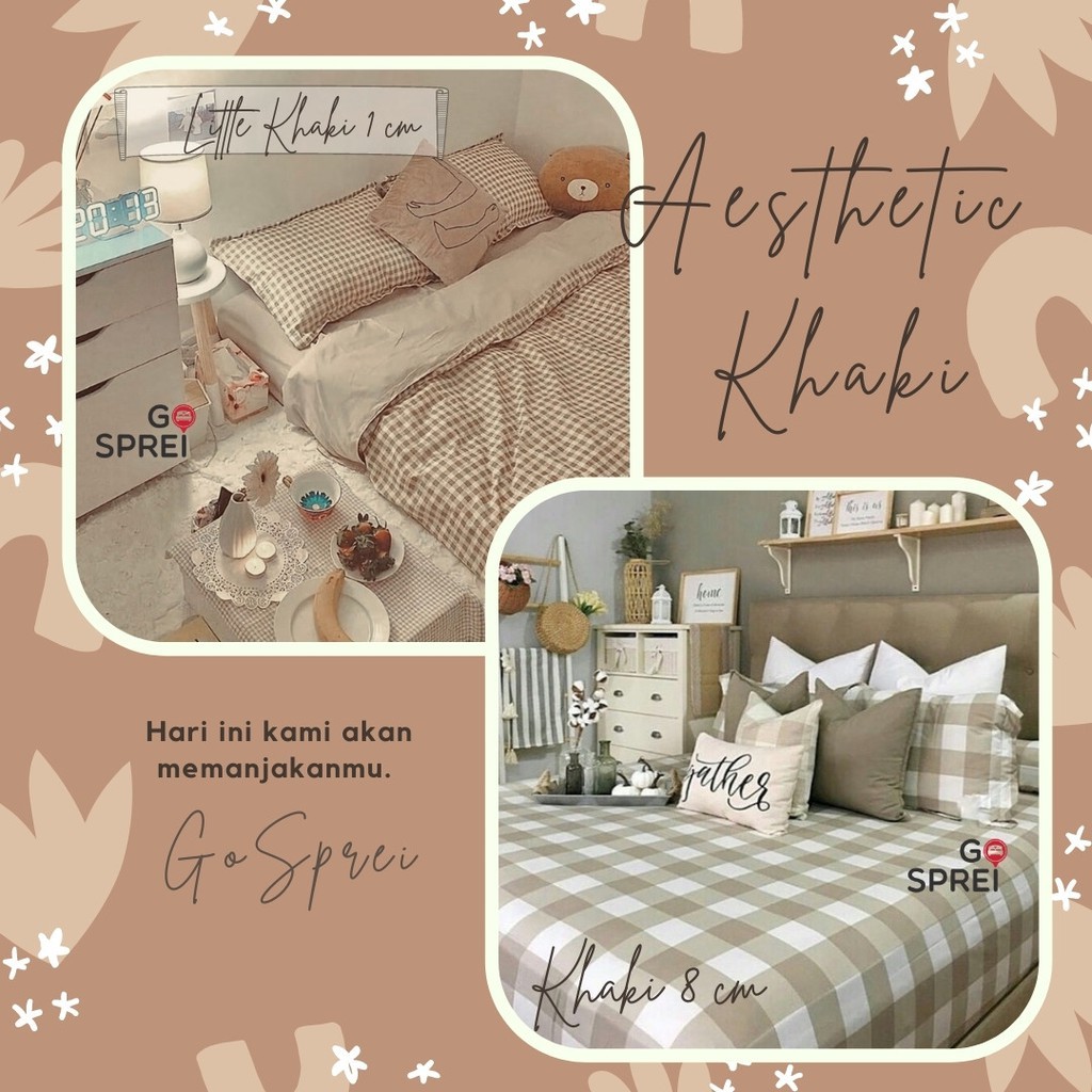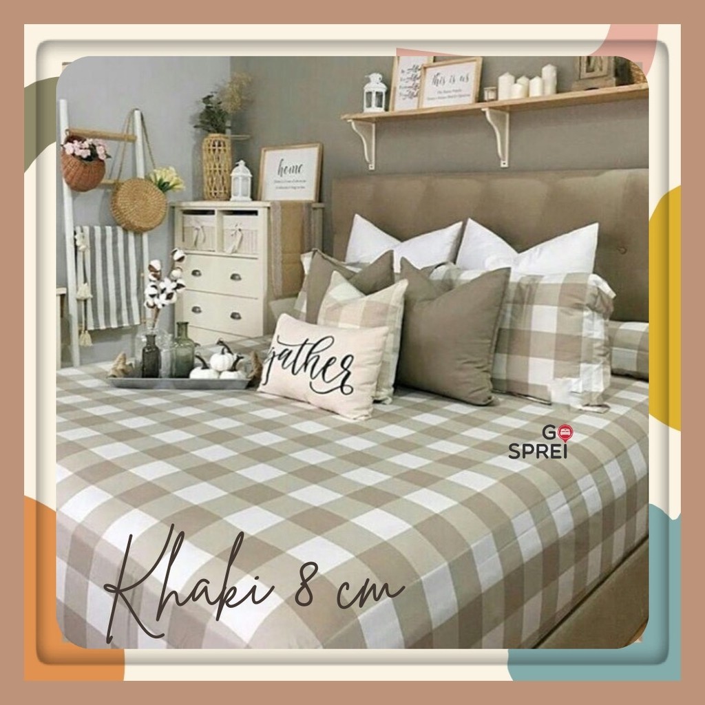 GOSPREI SPREI SET KOTAK Emily KHAKI Kotak 8 cm ( tanpa bedcover ) AESTHETIC KATUN KOREA SINGLE