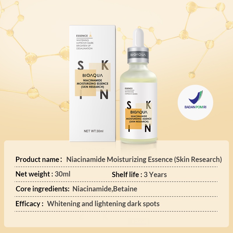 BIOAQUA Niacinamide Serum Moisturizing Essence (Skin Research) 30ml Brightening Serum Penghilang Flek Hitam Serum Pemutih Wajah Mencerahkan