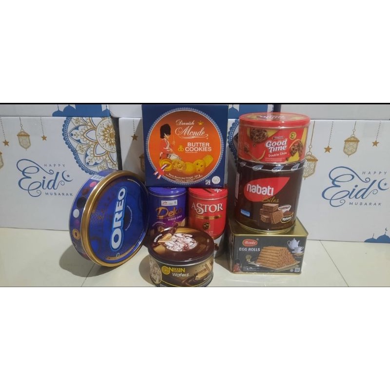 Parcel Biskuit Lebaran Paket Kue Kaleng Hamper Box Idul Fitri Monde Astor Oreo Good Times Nabati Egg Roll