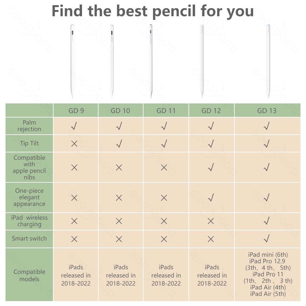Goojodoq 13th GD13 pencil Stylus Pencil for iPad with Palm Rejection with wireless charger, Active Pencil Pen for iPad mini 6 Air 4 Air 5 2019 2020 2021 Pro 11 Pro 12.9
