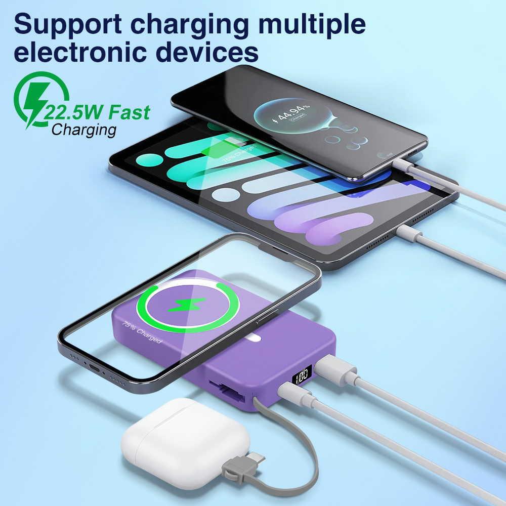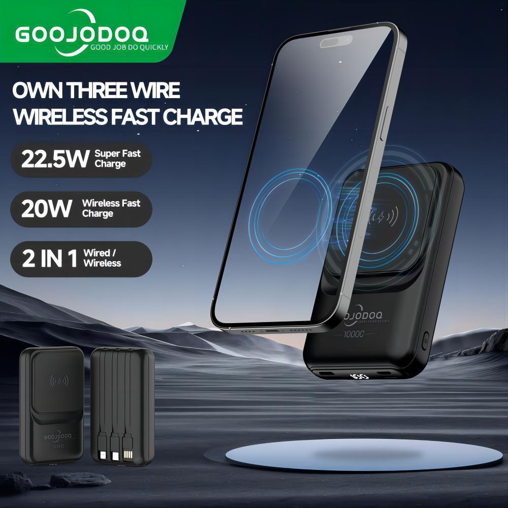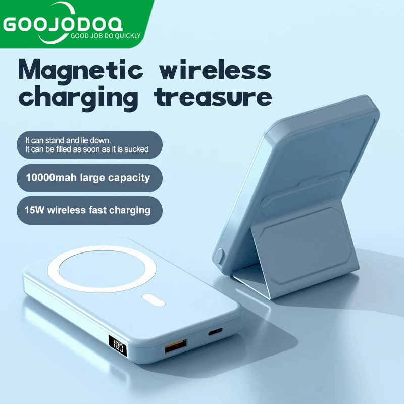 Goojodoq 10000mAh Magnetic Power Bank With Foldable Stand Fast Wireless Charger 15W External Battery 22.5W PD USB C For iPhone 13 Xiaomi