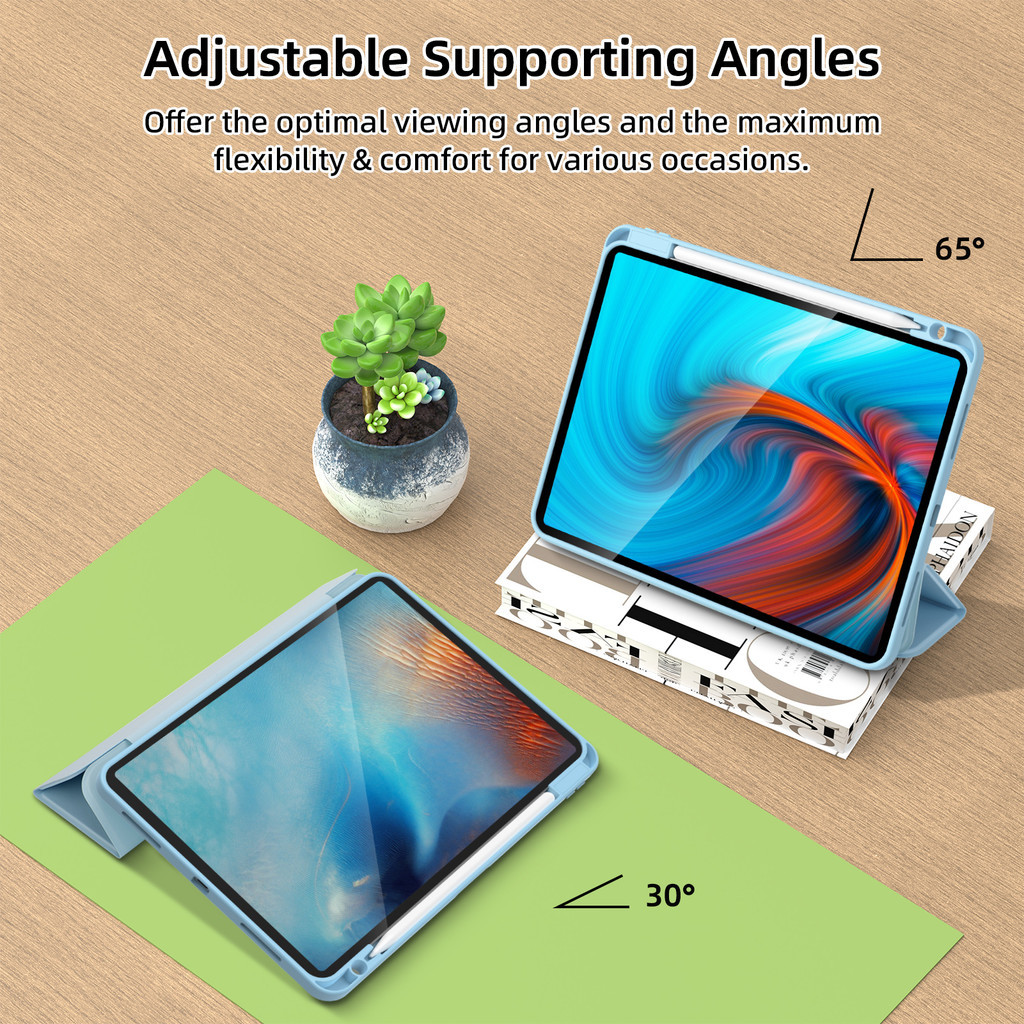 Goojodoq Tablet Protective Cover with Three Fold Adjustable Angle Strong Heat Dissipation for iPad Air 4 Air 5 Case for iPad 10th gen for iPad Pro 11 Case