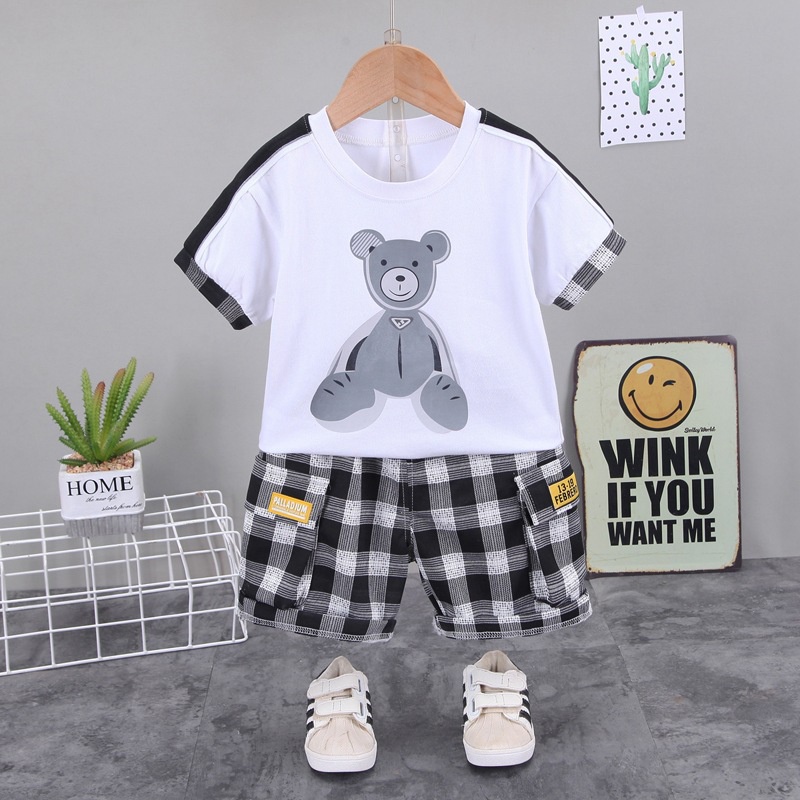 CUCI GUDANG!! PROMO 12.12 HappyOliver SET RETRO BEAR EBV Setelan Kaos Anak Bayi Laki-laki Pendek 6bulan - 4tahun
