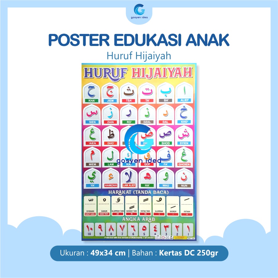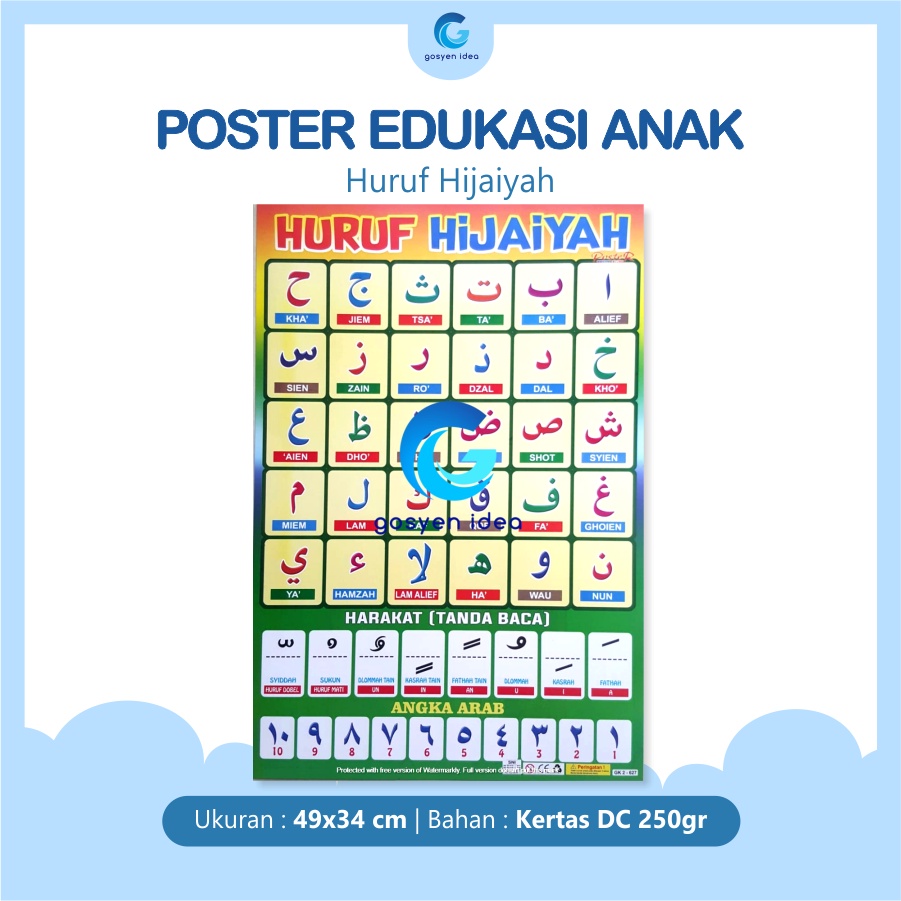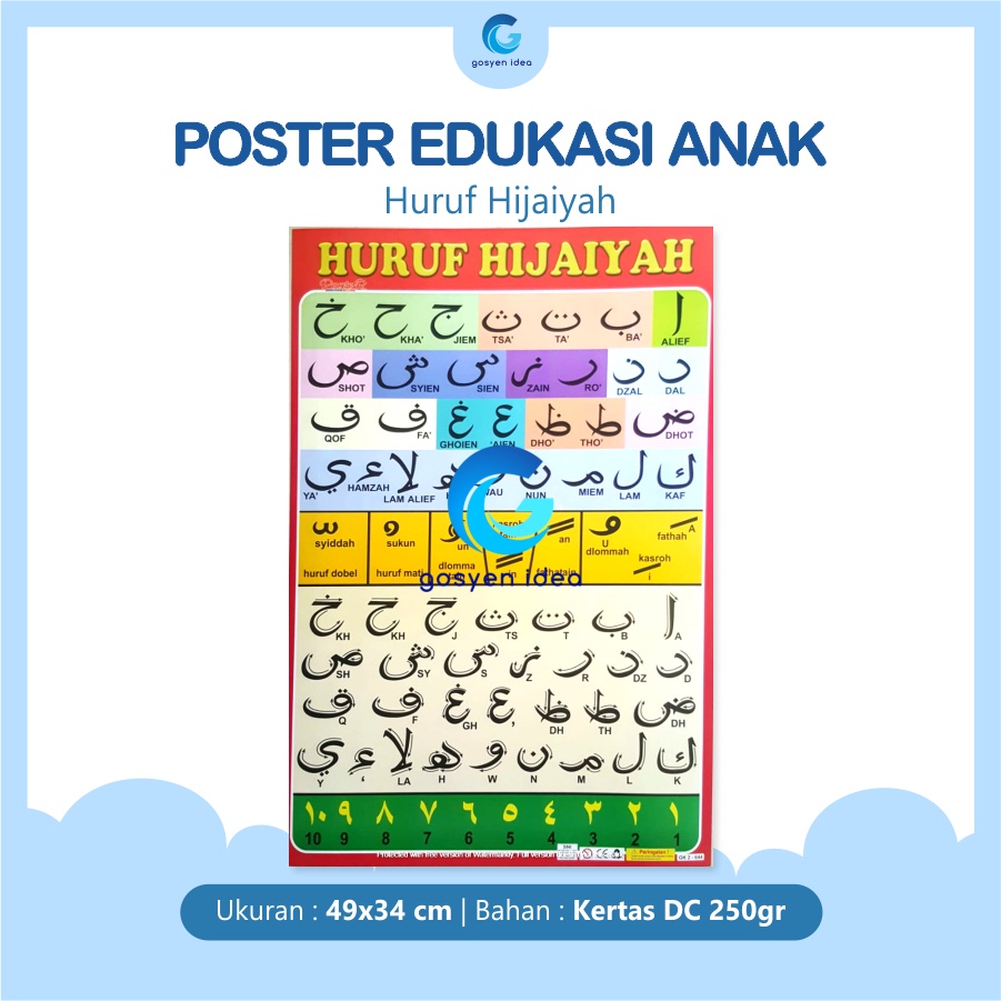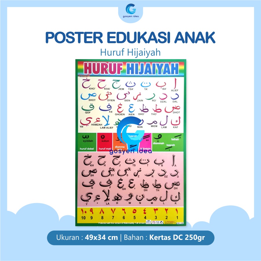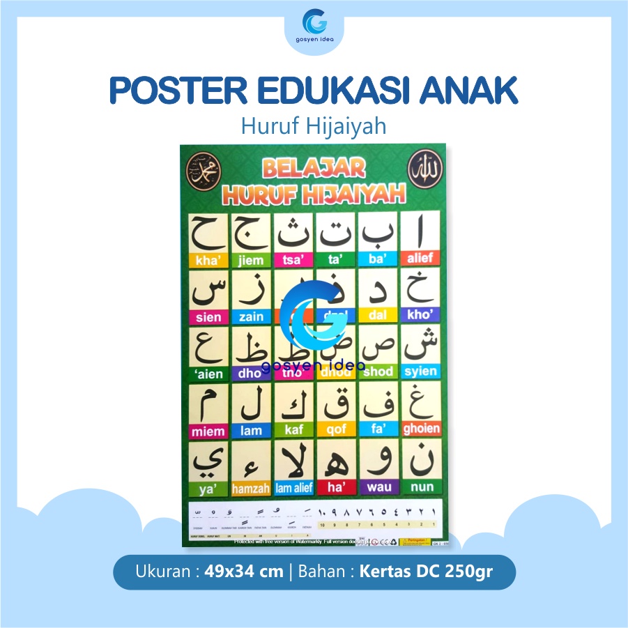 Poster Dinding Edukasi Pendidikan Anak Gambar Muslim Belajar Huruf Hijaiyah