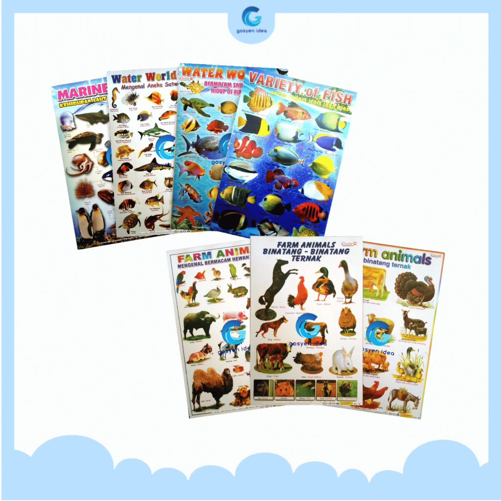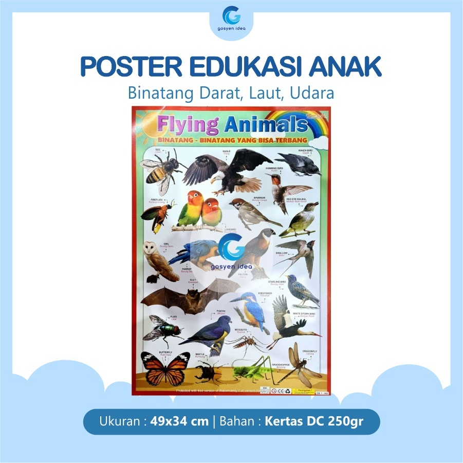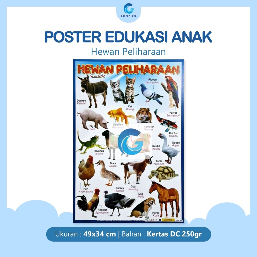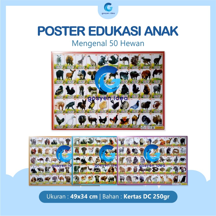 Poster Satuan Edukasi Anak Belajar Gambar Mengenal Jenis-Jenis Hewan Binatang