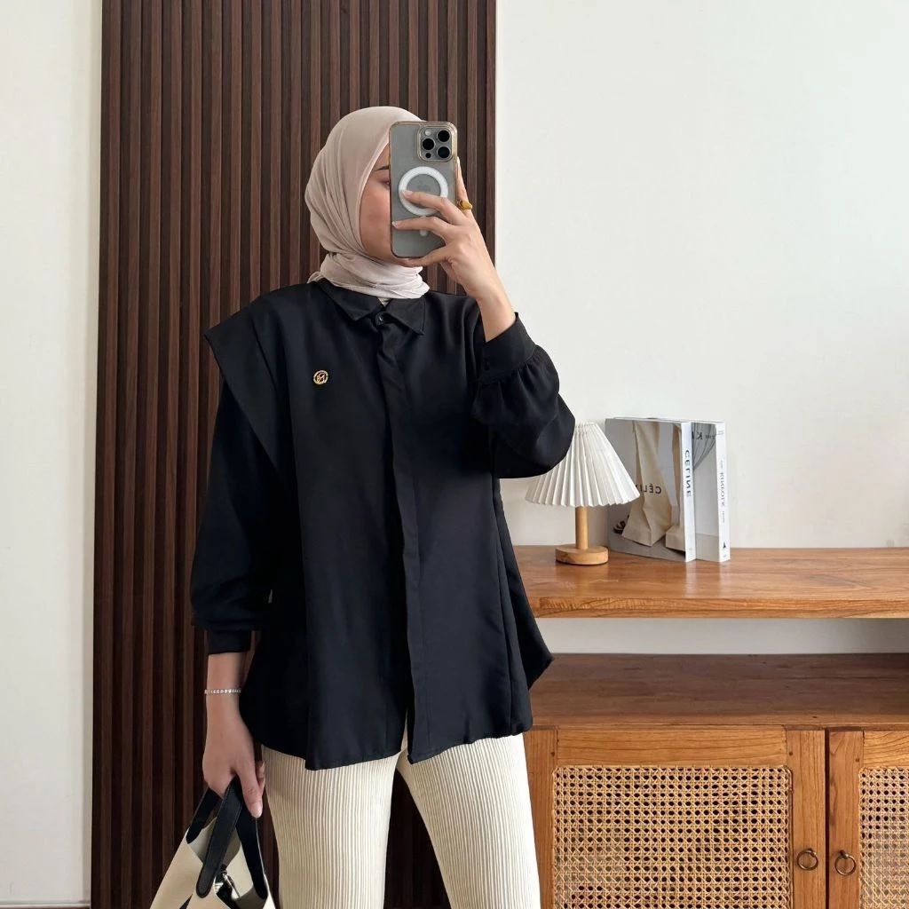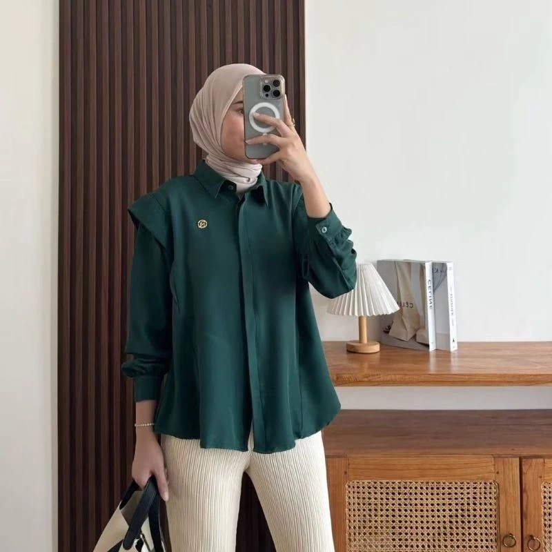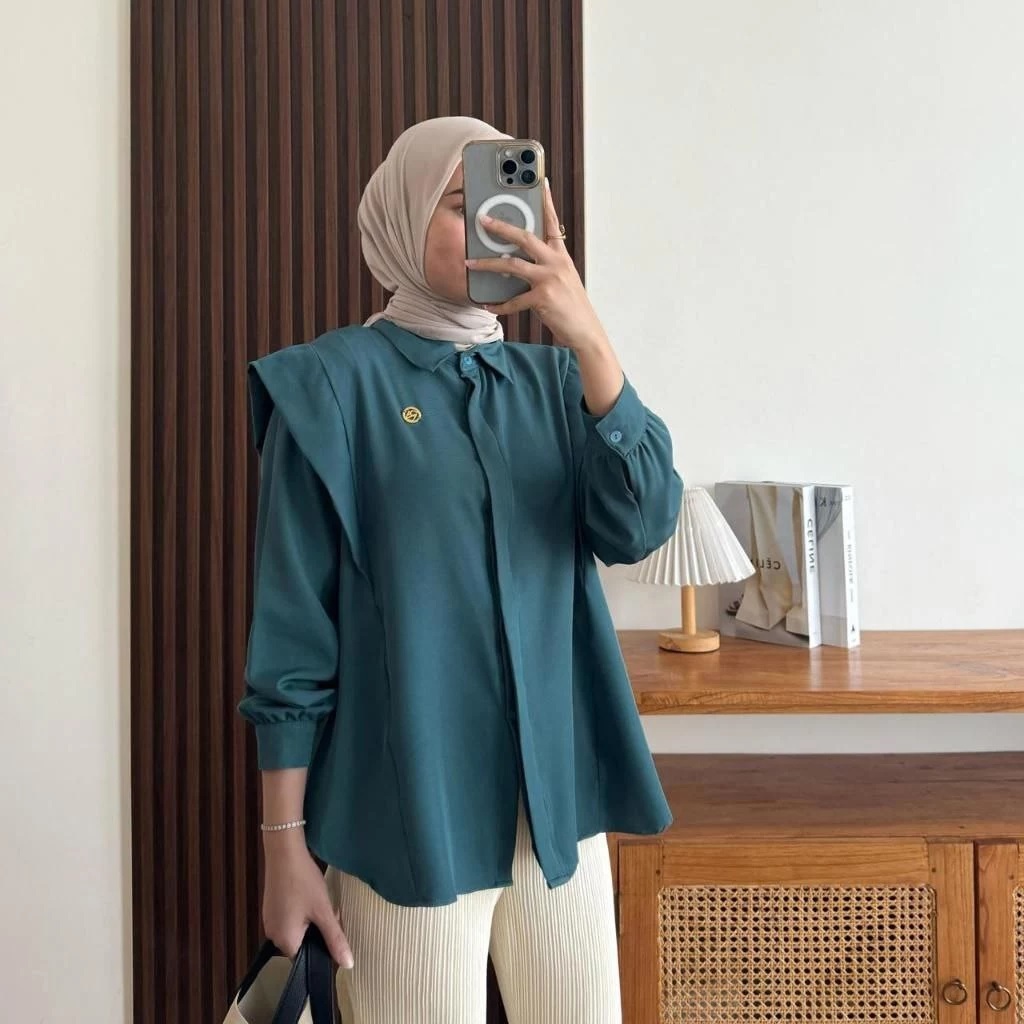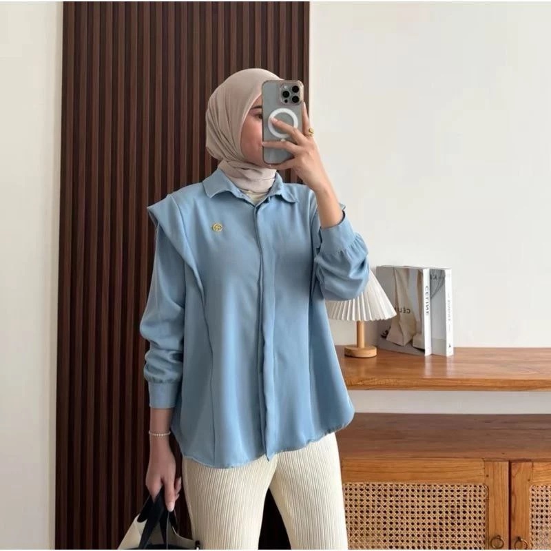 Andini Blouse Shakila Premium Polos Kekinian - Atasan Wanita Casual Lengan Panjang -KS