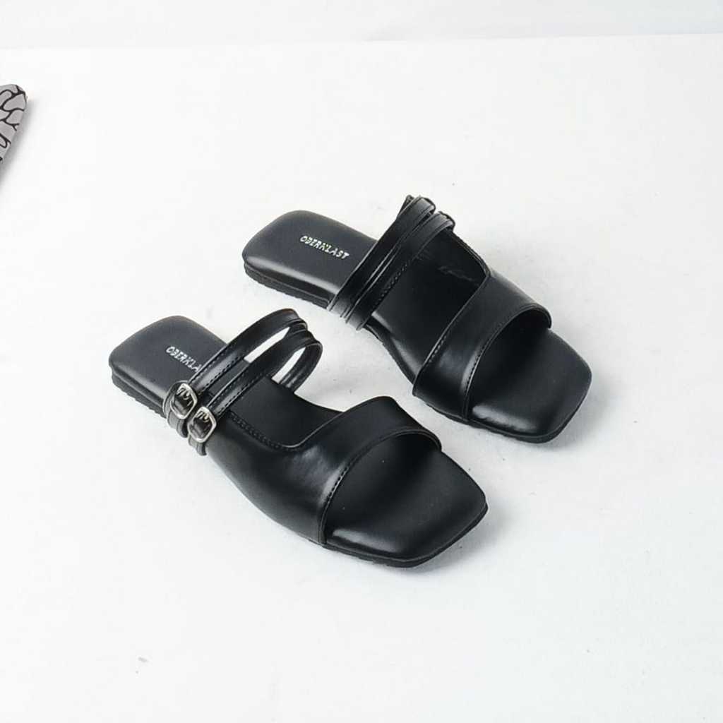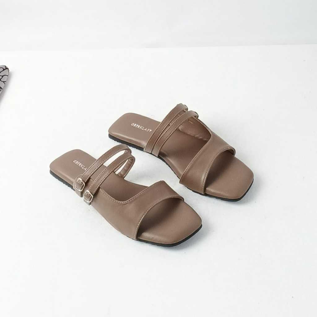 OBERKLAST Elara Sandal - Warna Hitam, Coklat, Beige Aksen Double Strap dengan Buckle Gesper Kecil
