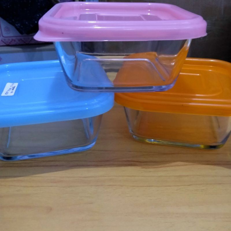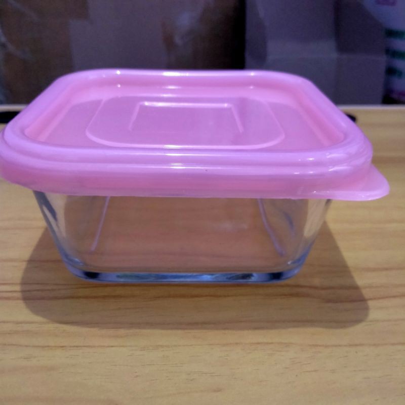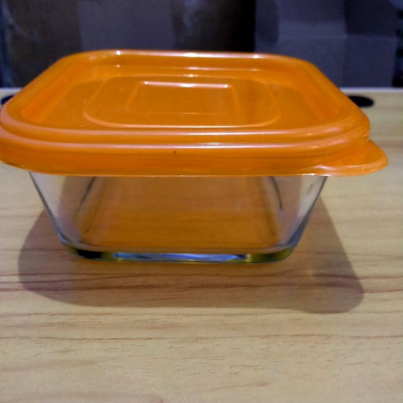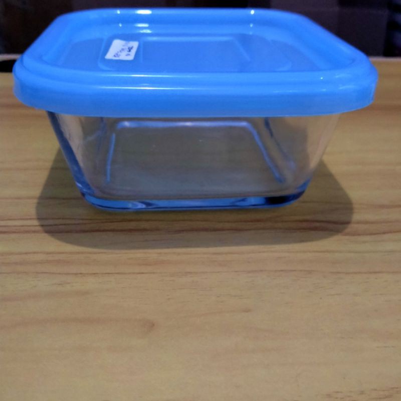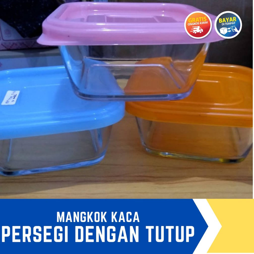 Mangkok Kaca Tebal Persegi Kotak Tutup Plastik / Mangkuk Bumbu /Mangkuk Dessert / Mangkuk Kue
