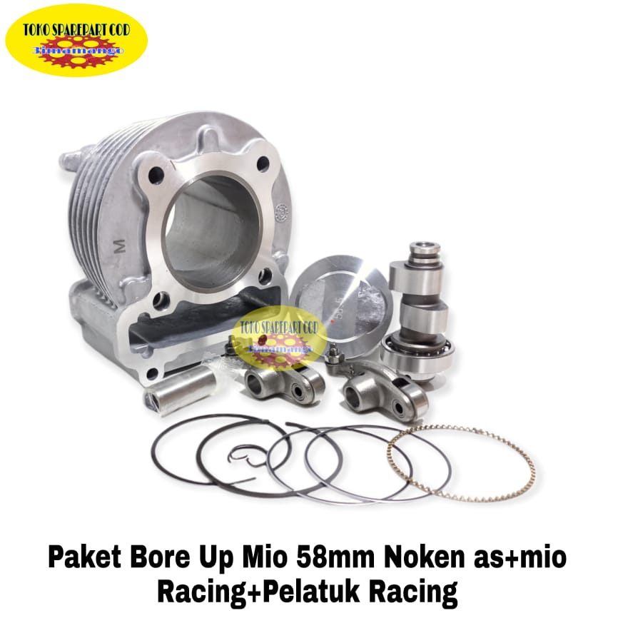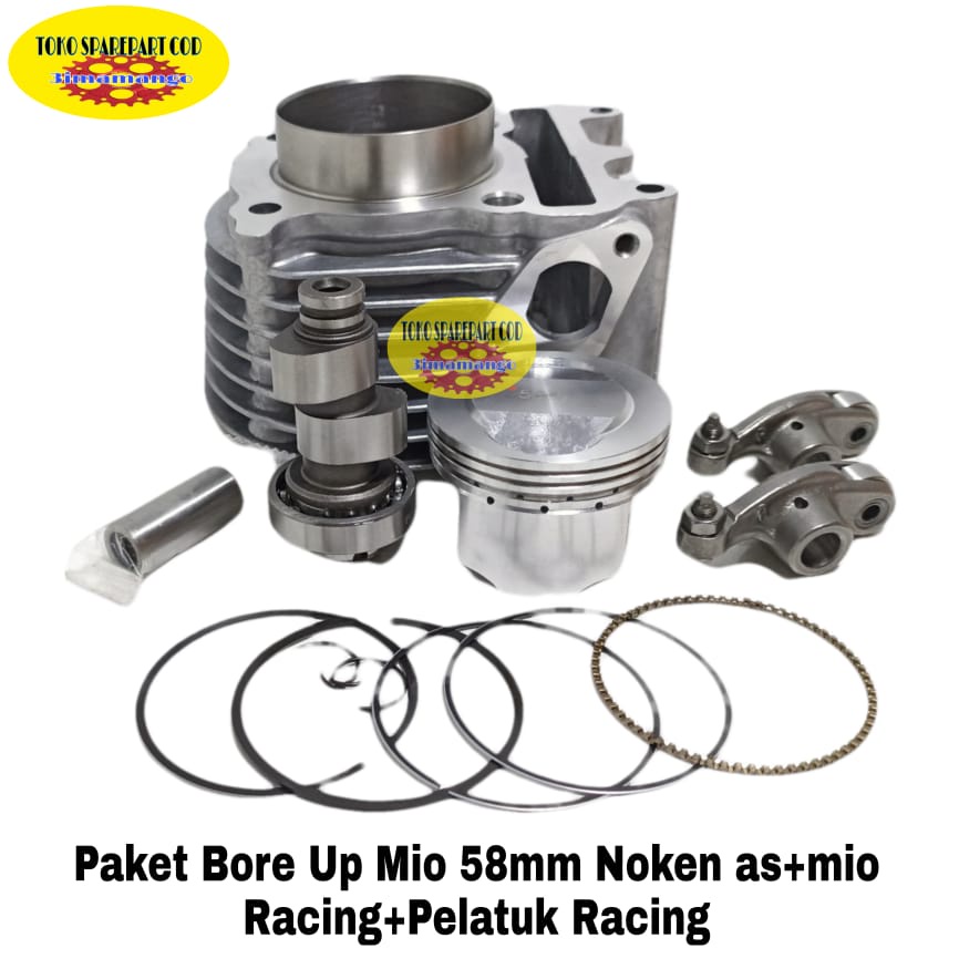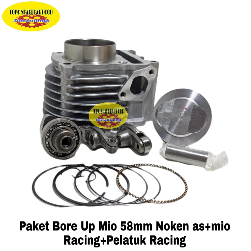 Paket Bore up Racing Blok Seher Block Seher Mio 58.5 mm Noken as Racing Pelatuk Roller Blok Seher Mio 58,5 mm assy Mio lama Mio Sporty Mio Smile Mio Soul fino karbu