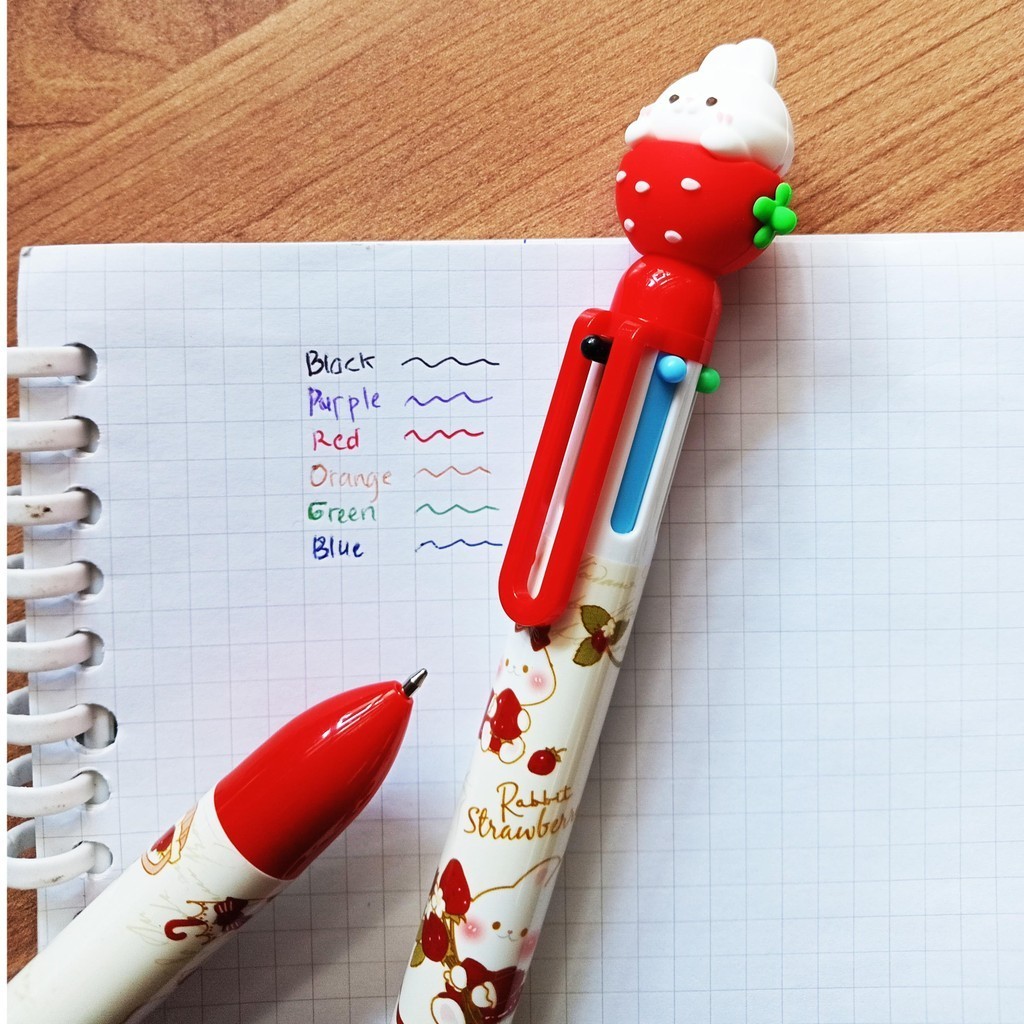 Fancy KUKI Ballpoint 0.7mm Rabbit Strawberry Pulpen Pena 6 in 1