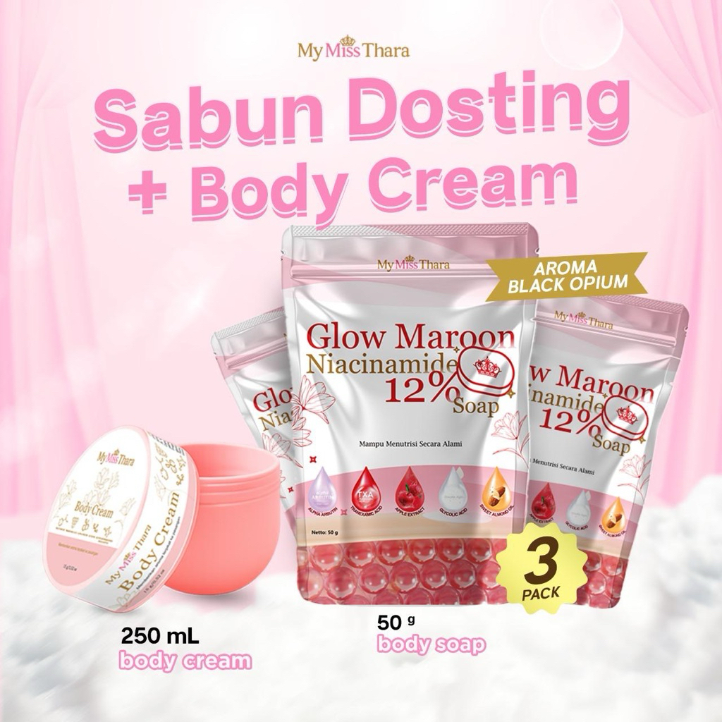 1 PC BODY SERUM DAN 3 PC SABUN GLOW MAROON NIACINAMIDE 12%