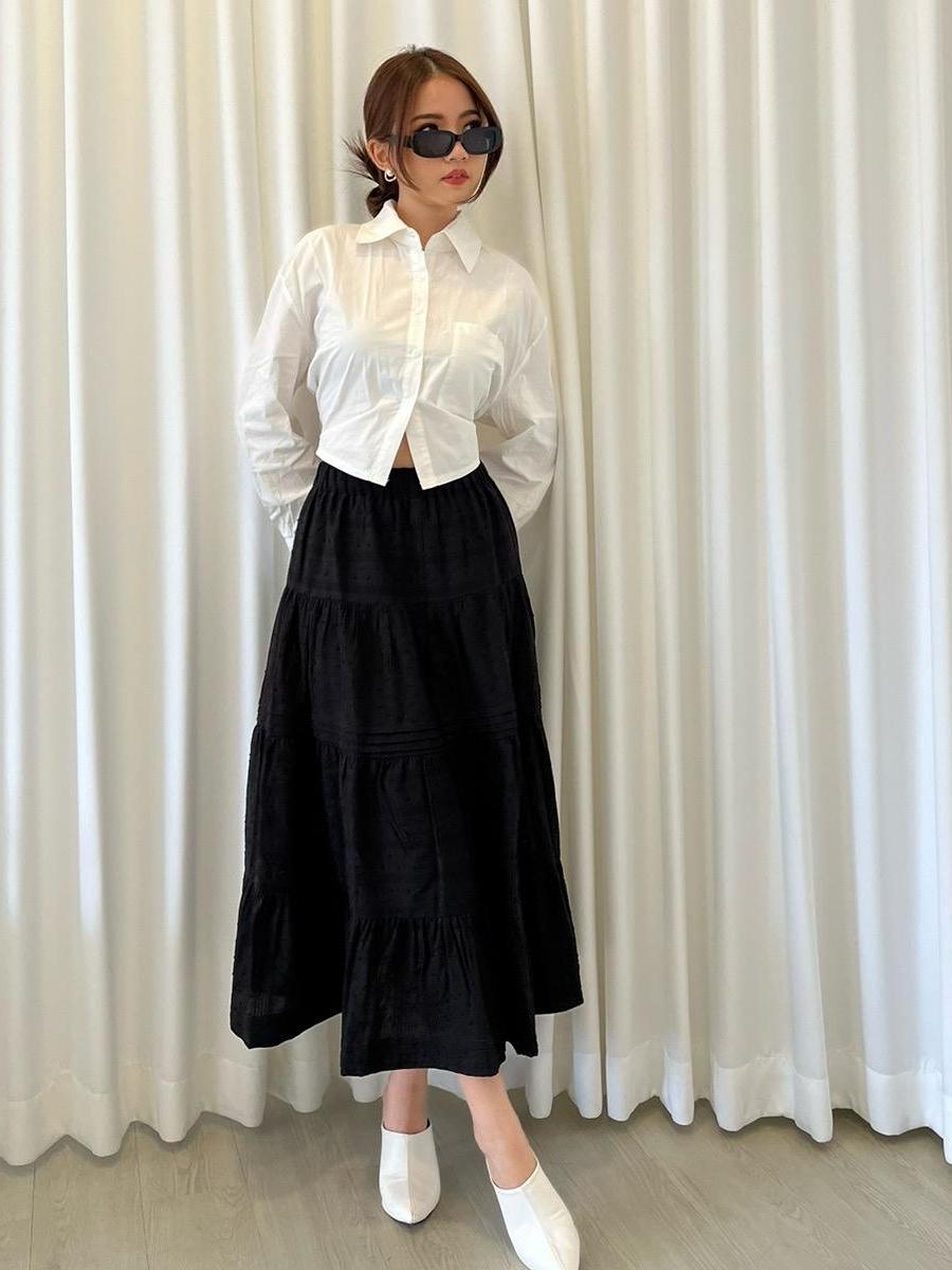 724 - Coquette long skirt multi layer 3warna / Rok maxi wanita casual