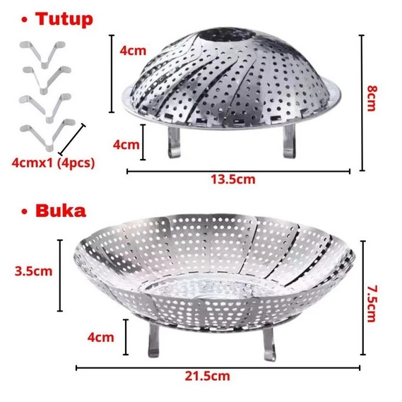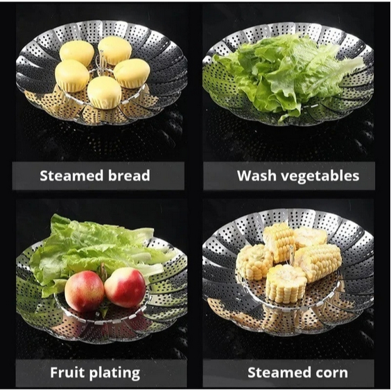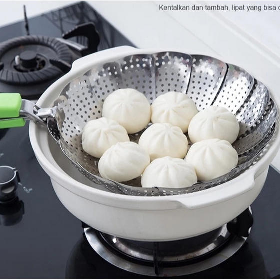 TBOSS Steamer Cooking Plate Alas Kukusan Lipat Flexible Serbaguna Stainless Steel 15 - 25CM Tatakan Kukus Panci