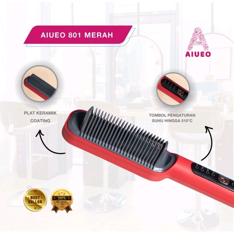 AIUEO Catokan Sisir 801 Hair Straightener Brush meluruskan rambut membuat rambut sehat Dan nampak indah