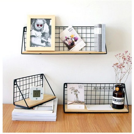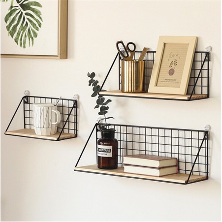 RAK DINDING TEMPEL GANTUNG MINIMALIS Serbaguna Kayu Besi Ambalan Buku Murah Bumbu Dapur