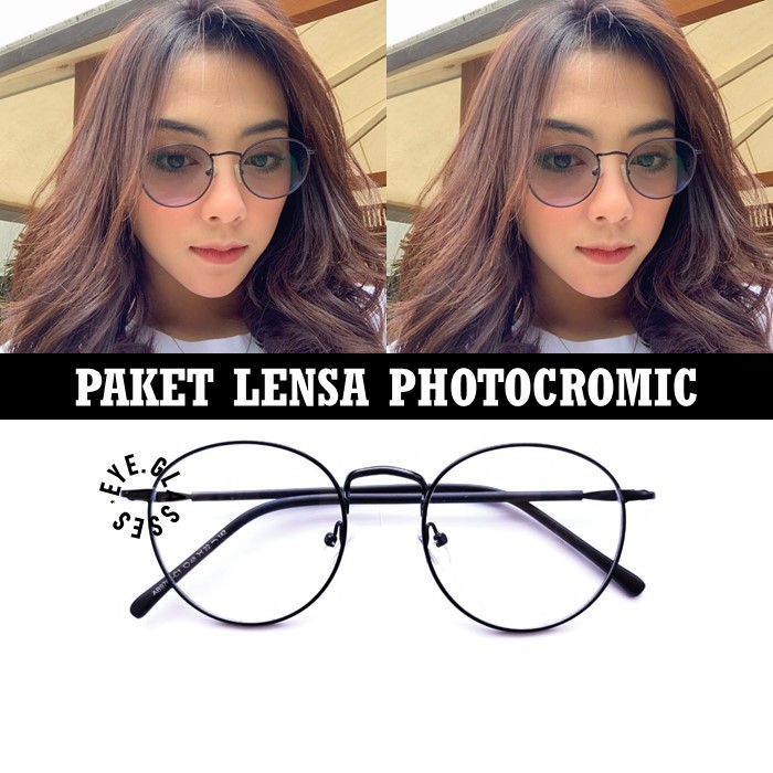 paket lensa photocromic √ frame kacamata minus murah wanita / pria kode DB 010
