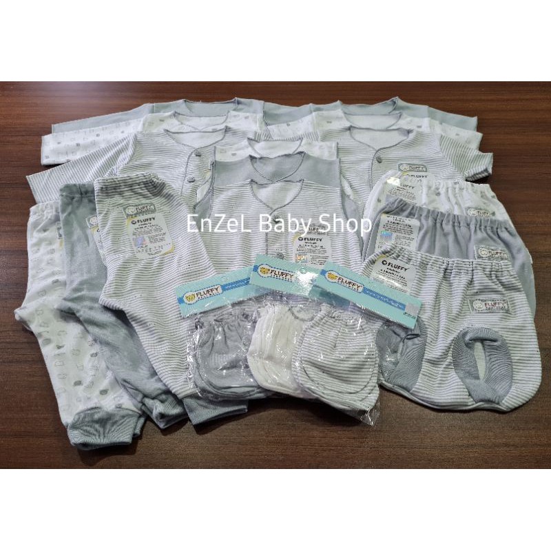 FLUFFY Paket baju bayi Neci Size Newborn 0-3 Bulan Seri Abu 15 atau 18pcs / Baju Baby