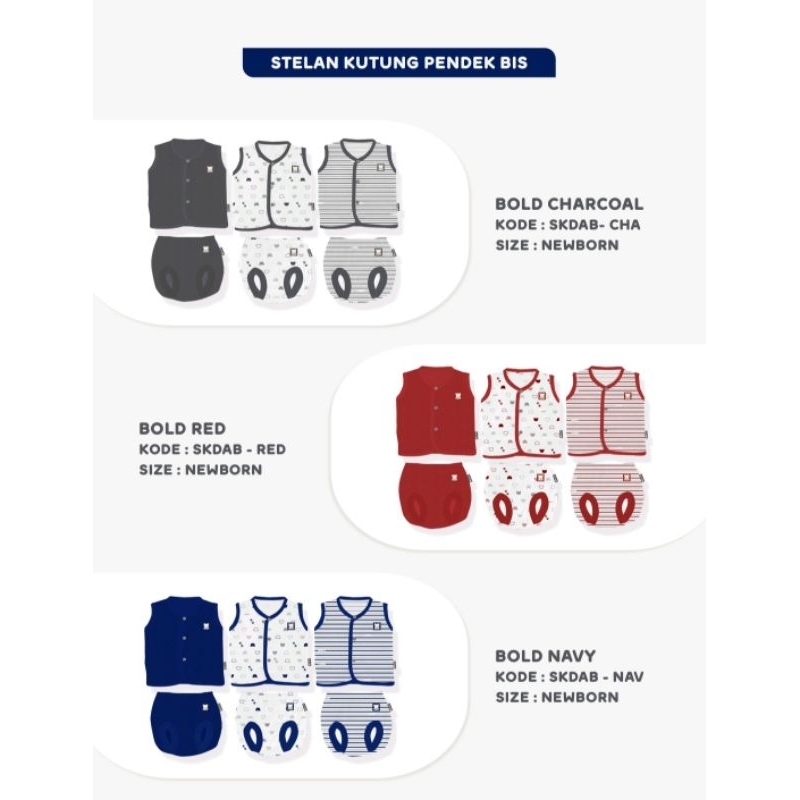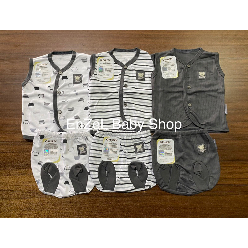 FLUFFY 3 Setelan Bayi Baju Kutung dan Celana Pop Bayi Seri BOLD Size Newborn 0-3 Bulan / Baju Baby