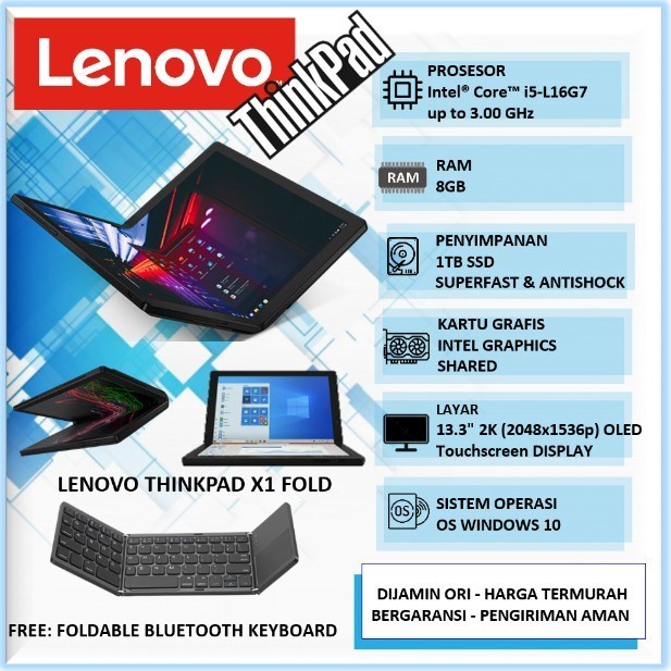 Laptop Touchscreen Lenovo Thinkpad X1 Fold Intel Core i5 L16G7 Ram 16GB SSD 1TB 13.3" 2K OLED Touchscreen Win10Pro Leather Black