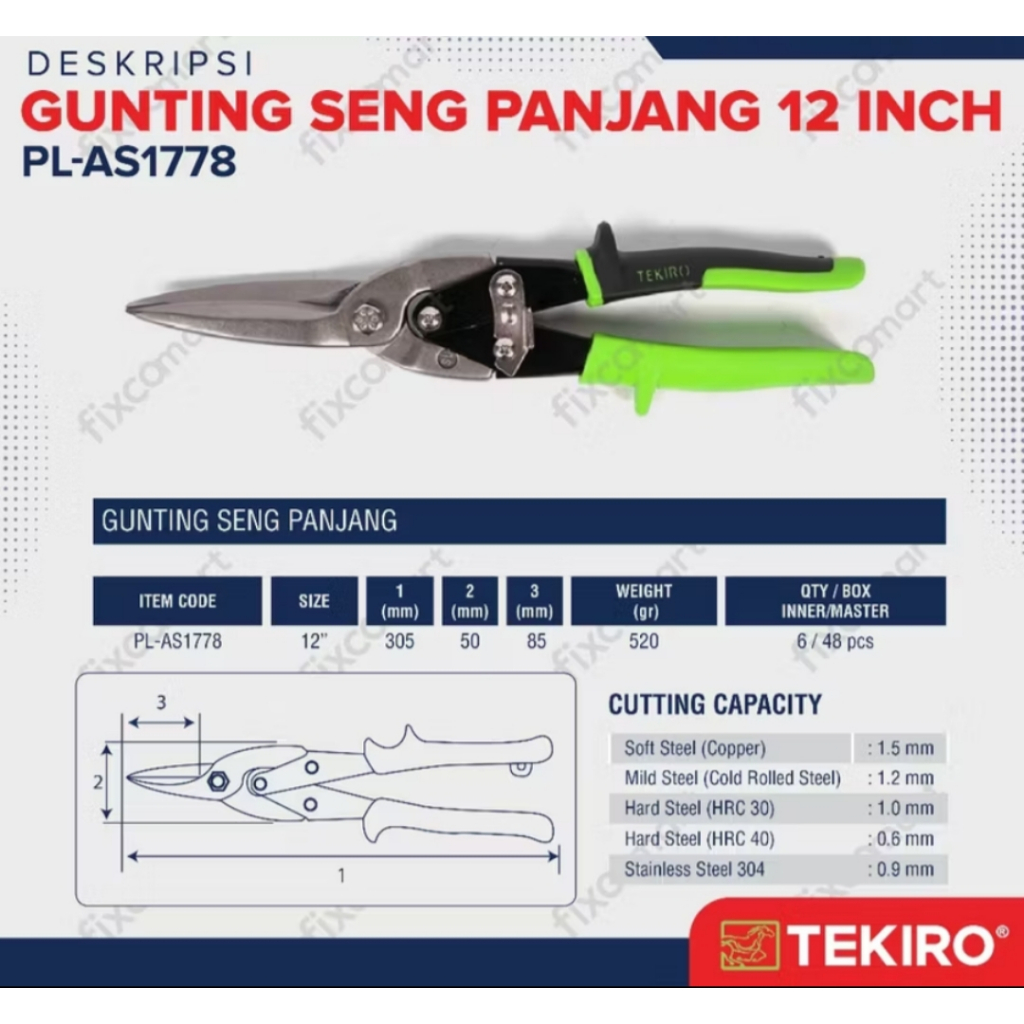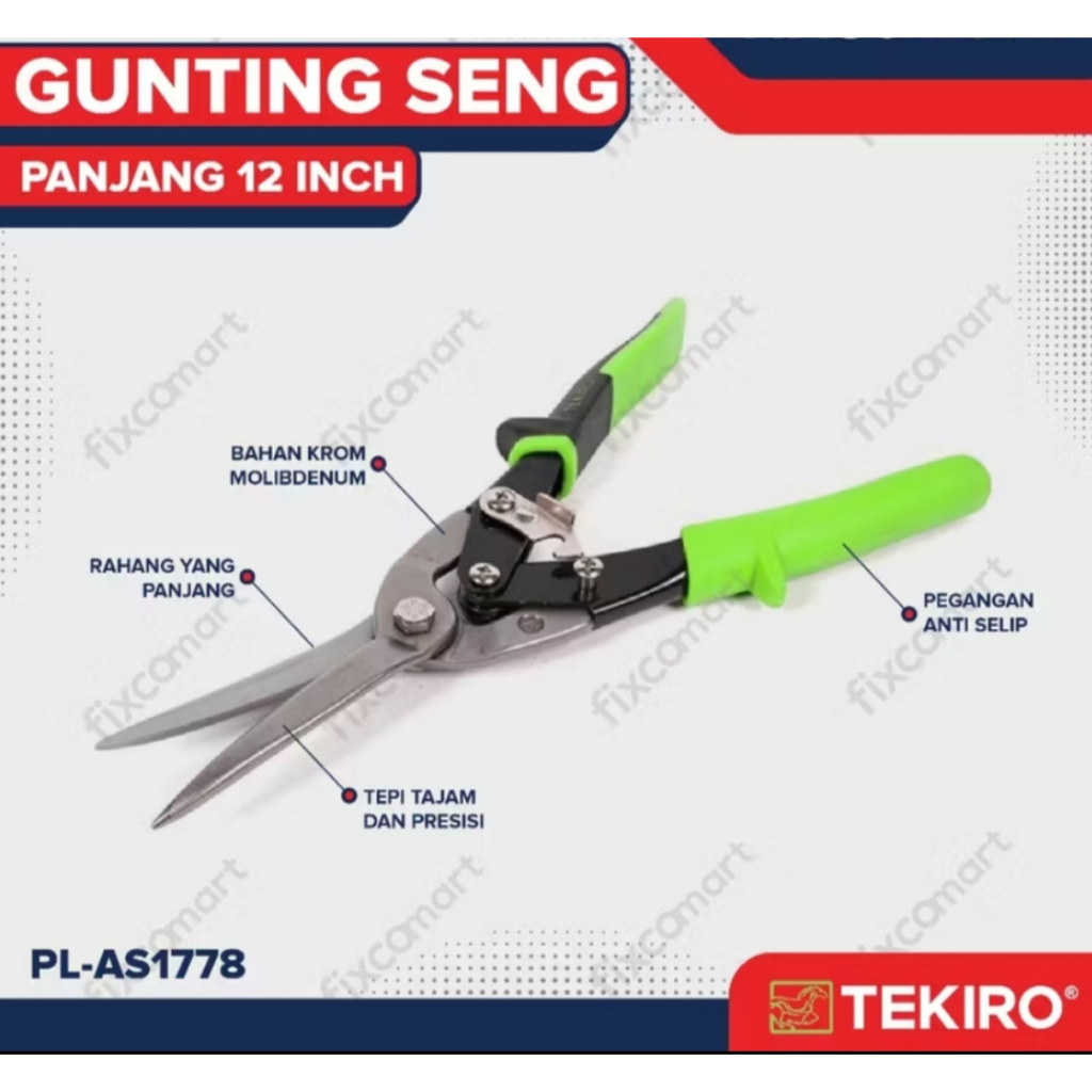 Tekiro Gunting Taso 12" - gunting seng taso baja ringan 12in lurus