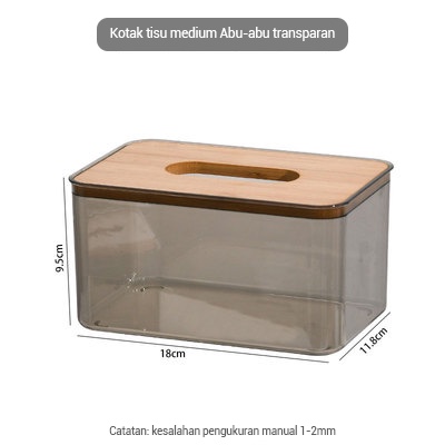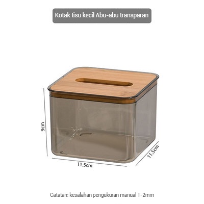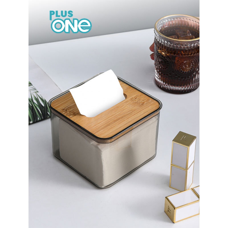 Plus One - Kotak Tissue Transparant Tutup Kayu Penyimpanan Tisu Box Wadah Tisue - 1106