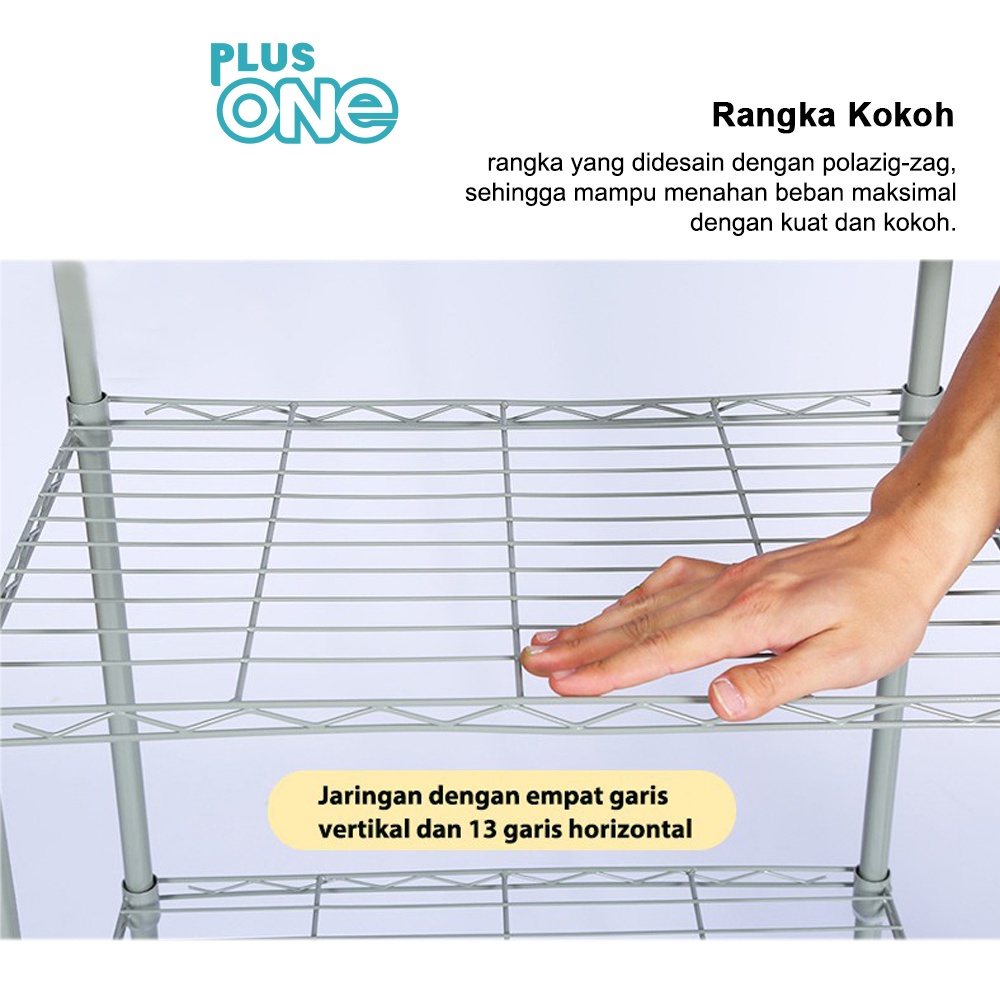 Plus One lv Rak Penyimpanan Susun 3 Tingkat Besi Rack Dapur Kamar Mandi Rak Buku Serbaguna -1001