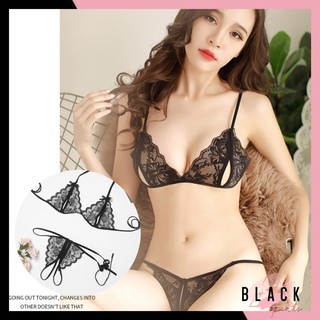 Blackpink Lingerie Set Bra dan G-String Transparant Pita Bunga 3009